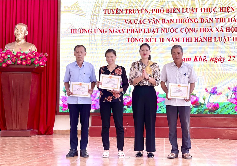 Khen thưởng tập thể, cá nhân có thành tích xuất sắc trong 10 năm thực hiện Luật hòa giải ở cơ sở.