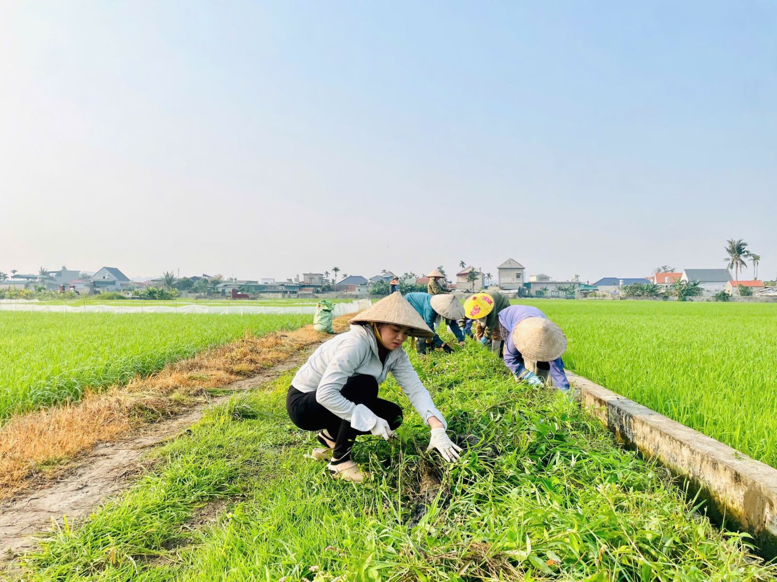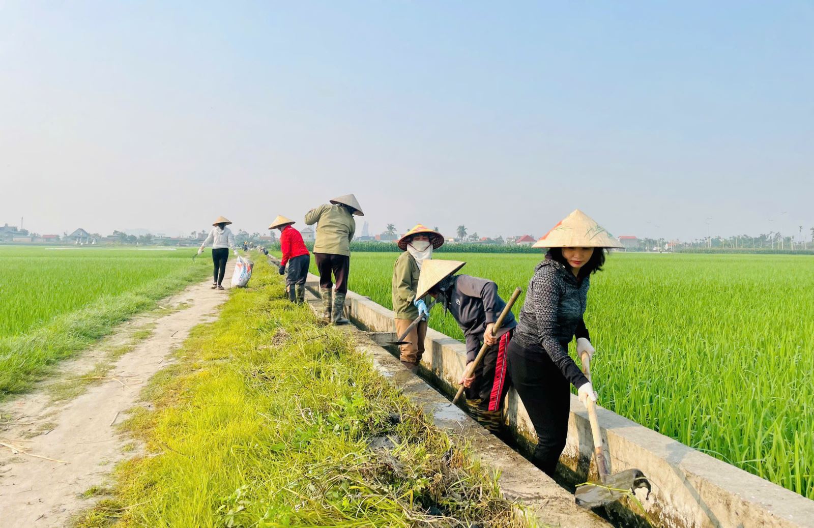 Dọn mương thuỷ lợi phục vụ tưới tiêu đồng ruộng.