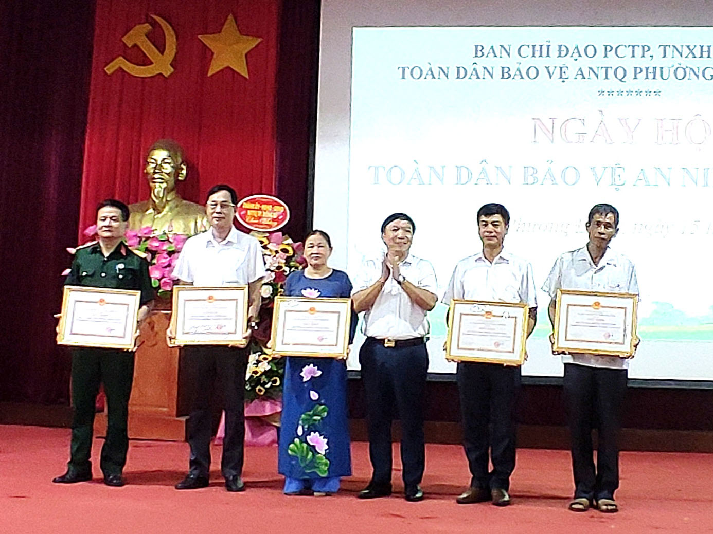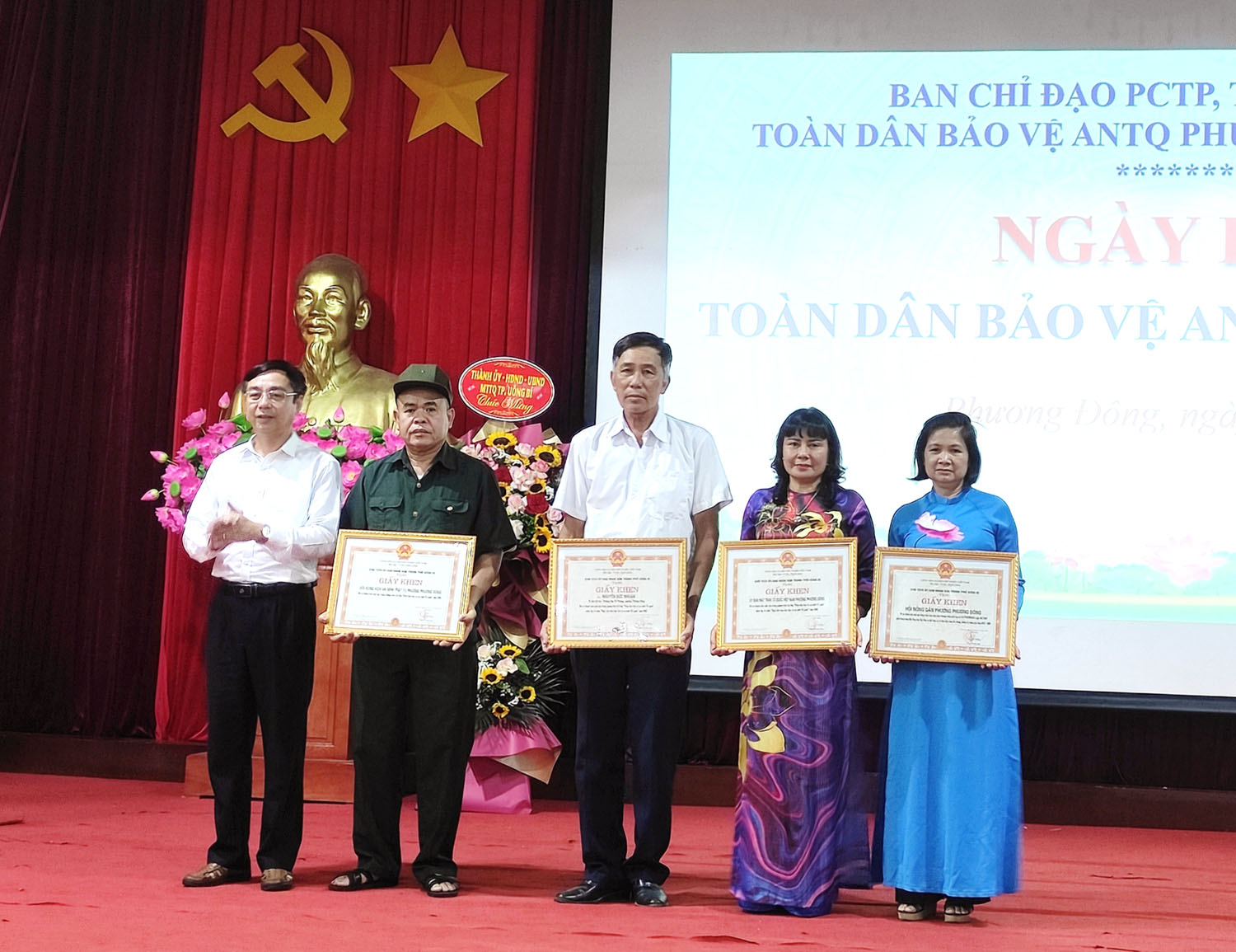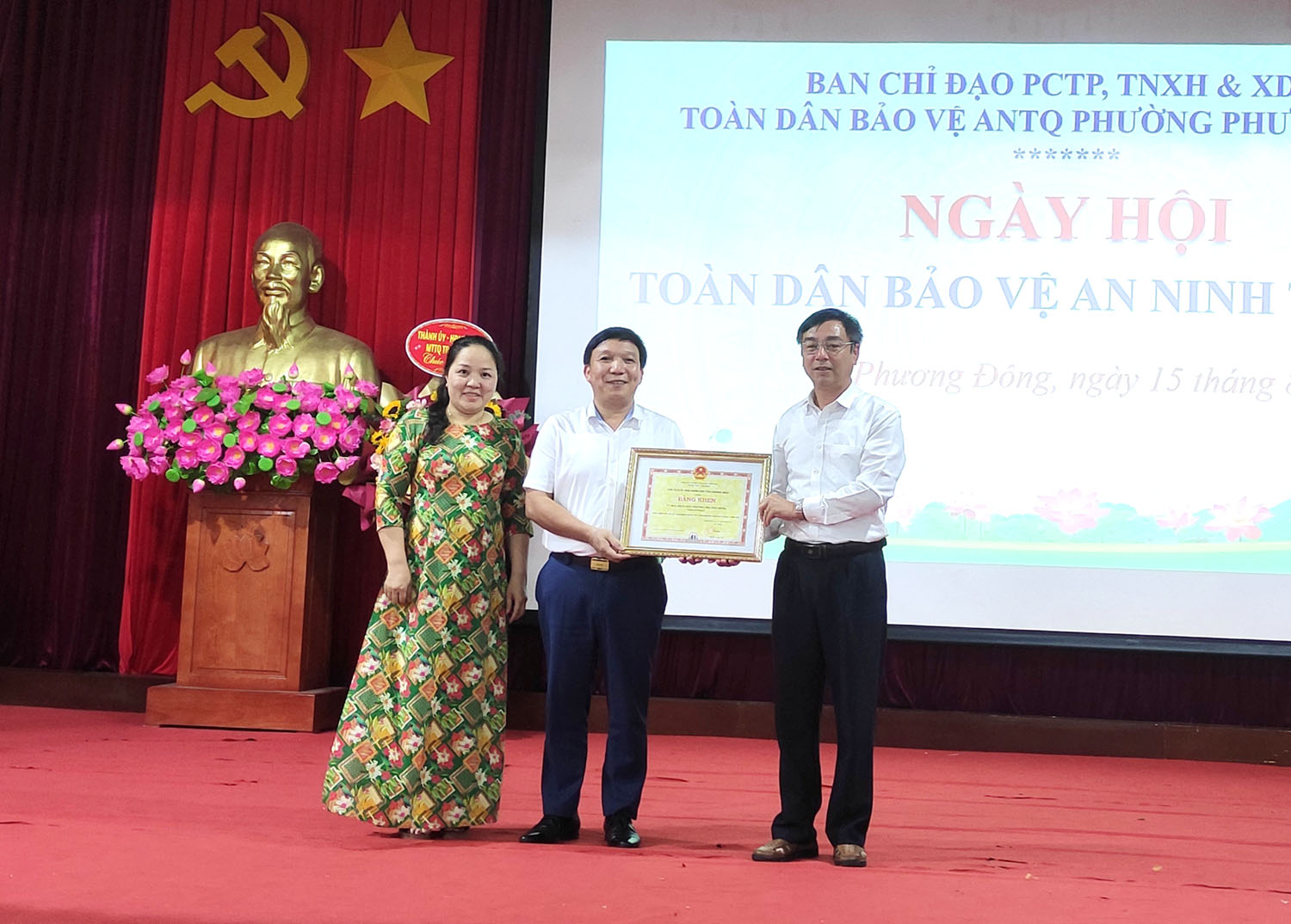 Cán bộ, nhân dân phường Phương Đông được Giám đốc Công an tỉnh tặng bằng khen vì thành tích xuất sắc trong phong trào toàn dân bảo vệ ANTQ.