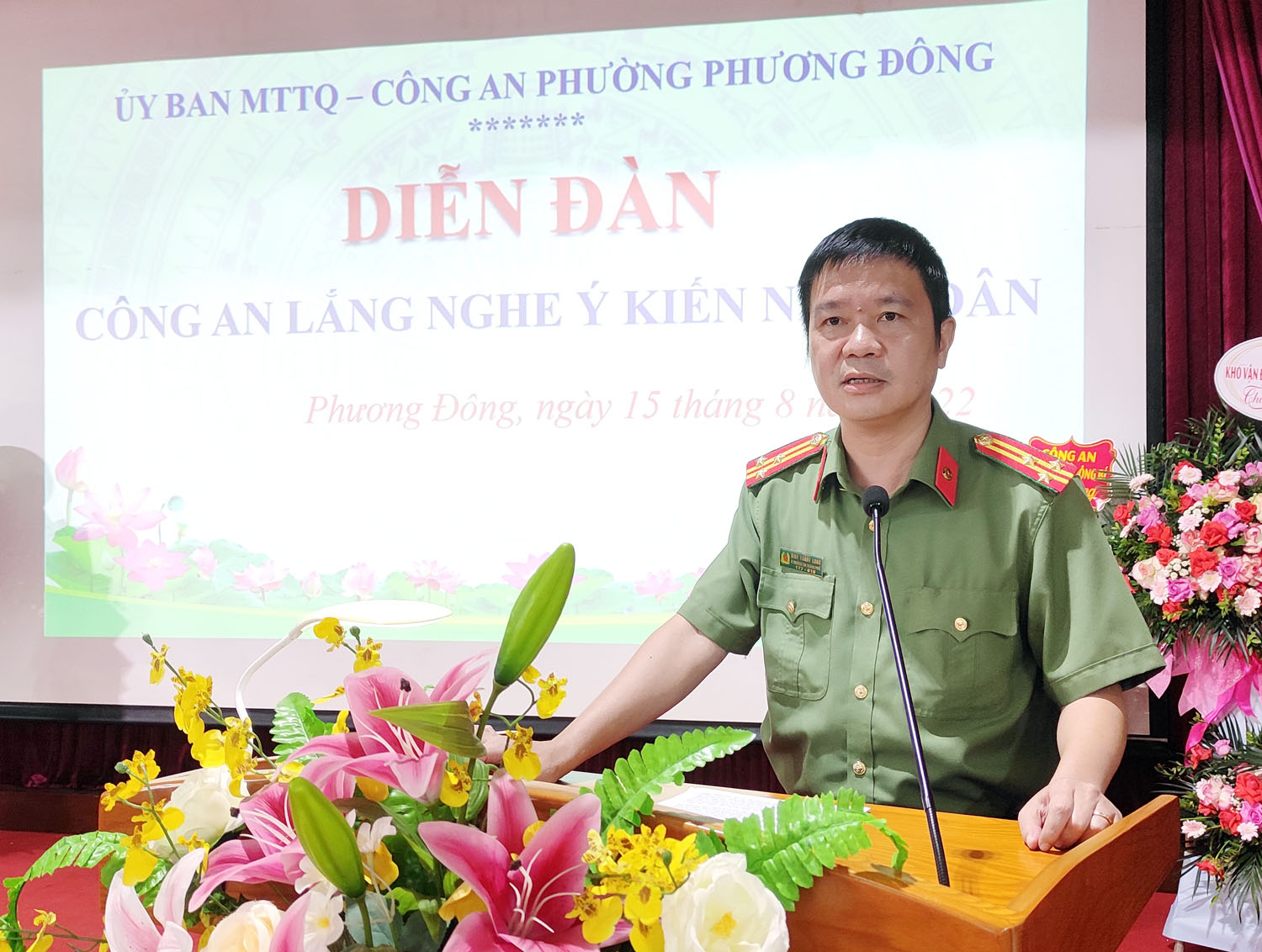 Tại Diễn đàn công an lắng nghe ý kiến Nhân dân, Nhân dân đánh giá cao kết quả đảm bảo ANTT trên địa bàn phường; biểu dương tinh thần trách nhiệm, tác phong, lề lối làm việc của cán bộ, chiến sỹ công an phường Phương Đông và Công an thành phố. Đồng thời đề nghị lực lượng công an quan tâm, giải quyết các bất cập về ATGT tại tuyến đường liên khu Tân Lập, quốc lộ 18A. Các ý kiến đề nghị đều đã được tiếp thu, giải trình đầy đủ.