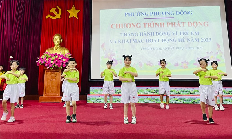 Tháng hành động vì trẻ em năm 2023 trên địa bàn phường Phương Đông được phát động với chủ đề “Chung tay giảm thiểu tổn hại trẻ em”. Phát biểu tại chương trình, lãnh đạo UBND phường đề nghị các cấp, ngành, đoàn thể, các tầng lớp nhân dân tiếp tục tạo mọi điều kiện tốt nhất để mọi trẻ em đều có cuộc sống an toàn, phát triển trong môi trường lành mạnh, thân thiện và được bảo vệ, không bị xâm hại, không xảy ra những tai nạn đáng tiếc. Đồng thời gắn viêc triển khai Tháng hành động vì trẻ em với tổ chức các hoạt động bổ ích quản lý, giáo dục thanh thiếu nhi, học sinh trong dịp hè; tạo cơ hội cho trẻ em được tham gia vào các hoạt động của gia đình, nhà trường và xã hội.