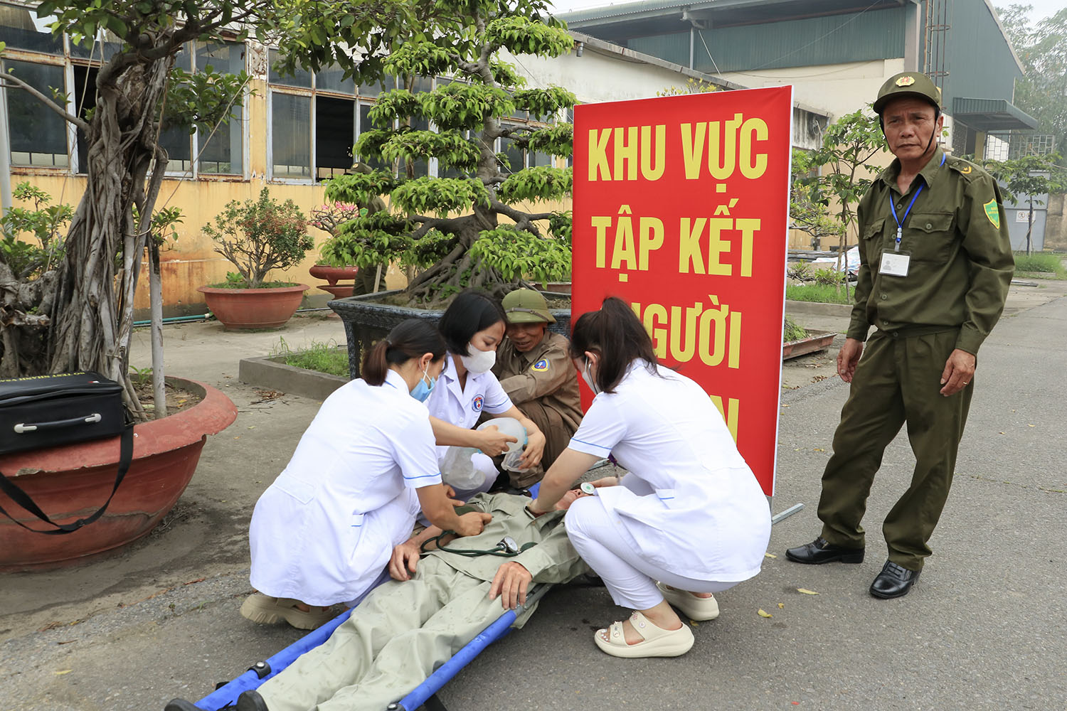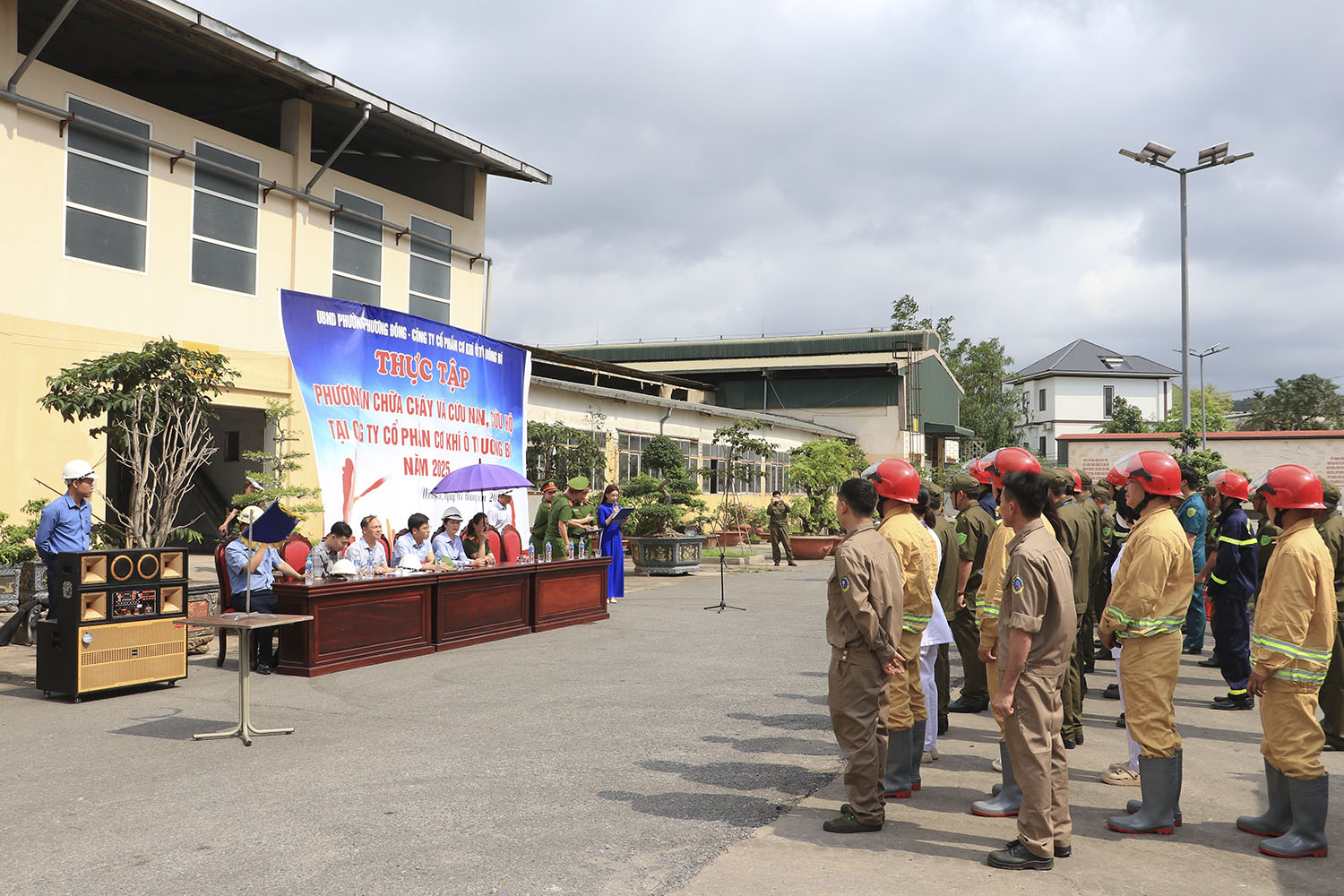 Tình huống giả định được xây dựng sát thực tế, xảy ra cháy tại khu vực sản xuất của Công ty Cổ phần Cơ khí Ô tô Uông Bí. Ngay khi phát hiện cháy, Đội PCCC cơ sở cùng công nhân viên của Công ty đã nhanh chóng triển khai các biện pháp chữa cháy ban đầu và báo tin đến lực lượng Cảnh sát PCCC và CNCH, UBND và Công an phường Phương Đông.