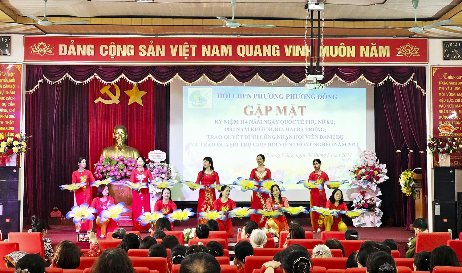 Sáng 6/3, Hội LHPN phường Phương Đông tổ chức gặp mặt kỷ niệm 114 năm Ngày Quốc tế phụ nữ 8/3 và kết nạp hội viên danh dự. Dự và chúc mừng buổi gặp mặt có đại diện lãnh đạo Hội LHPN thành phố; lãnh đạo cấp ủy, chính quyền địa phương.