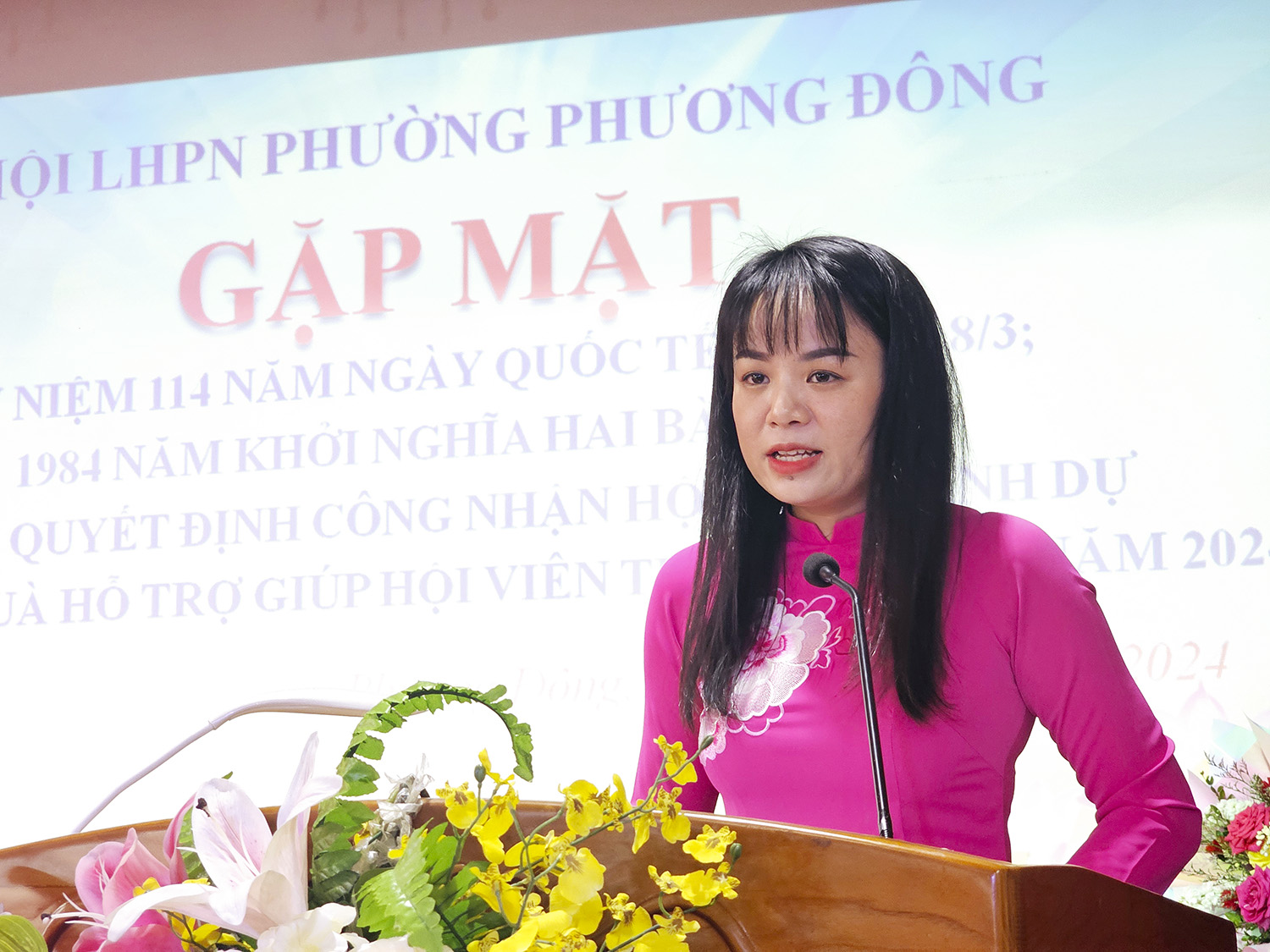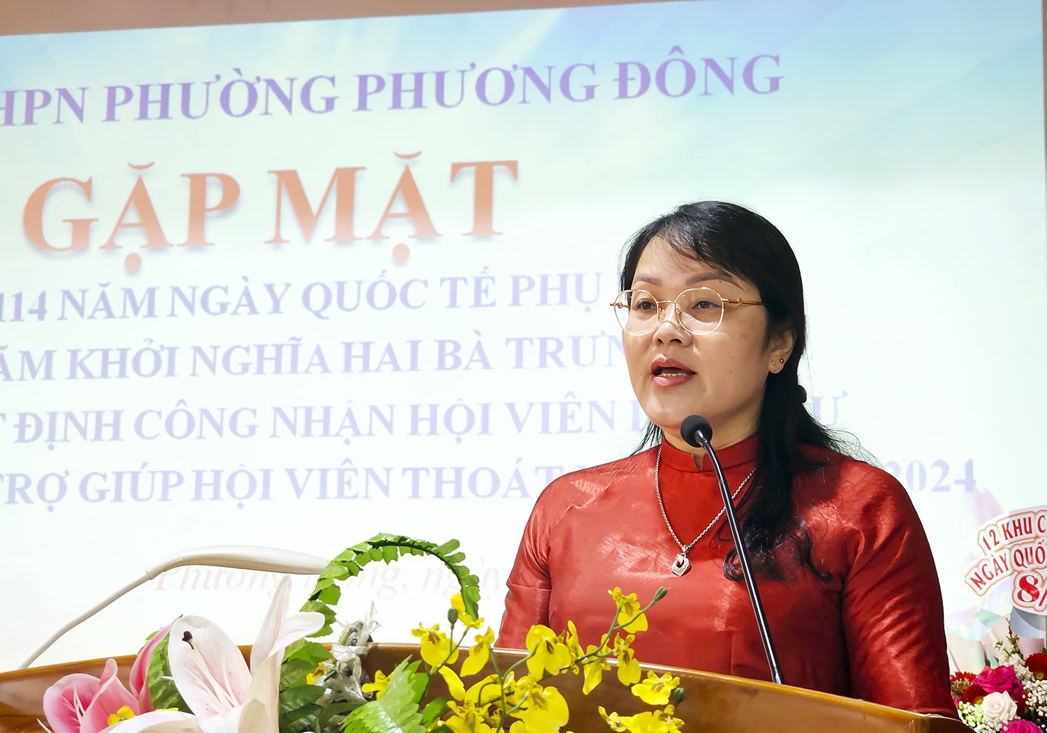 Đồng chí Chủ tịch Hội LHPN phường ôn lại truyền thống ngày kỷ niệm.