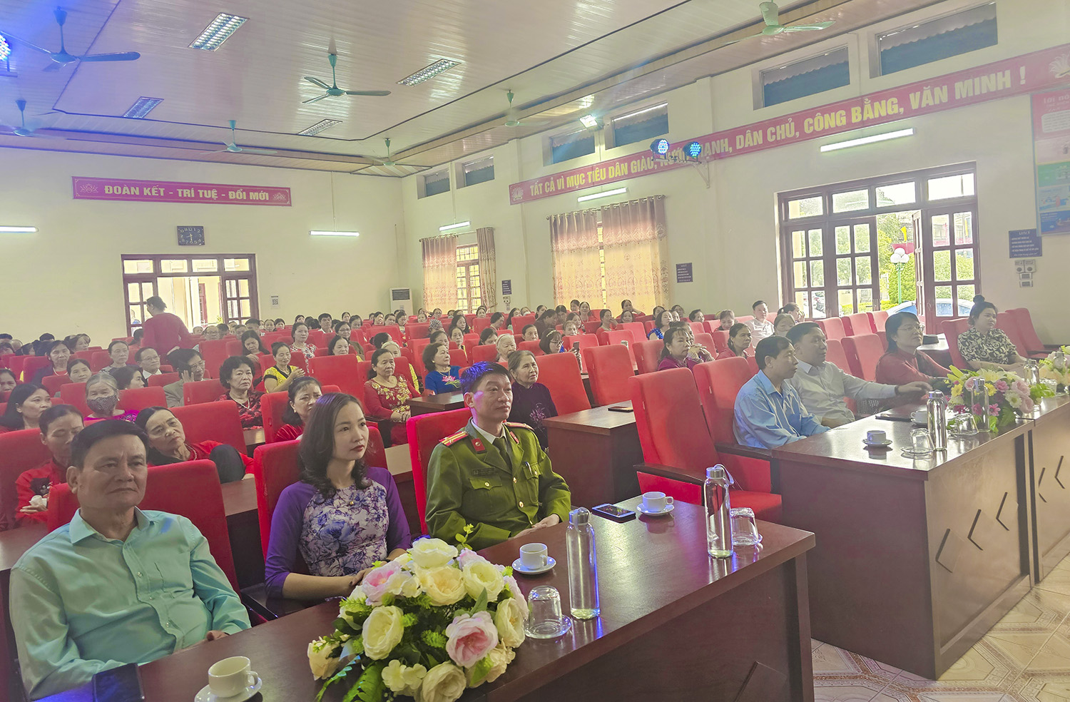 Tại buổi gặp mặt, các đại biểu đã cùng nhau ôn lại truyền thống 114 năm Ngày Quốc tế phụ nữ 8/3 và 1984 năm Khởi nghĩa Hai Bà Trưng, một lần nữa khẳng định vai trò của người phụ nữ qua các thời kỳ. Cũng trong chương trình, các tiết mục văn nghệ ca ngợi hình ảnh người phụ nữ, tình yêu quê hương, đất nước cũng được các hội viên và Nhân dân trình diễn mang lại không khí vui tươi, phấn khởi.