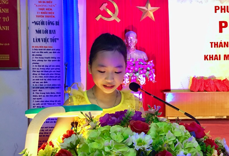 Đại diện thiếu nhi phường Phương Nam phát biểu tại lễ phát động.