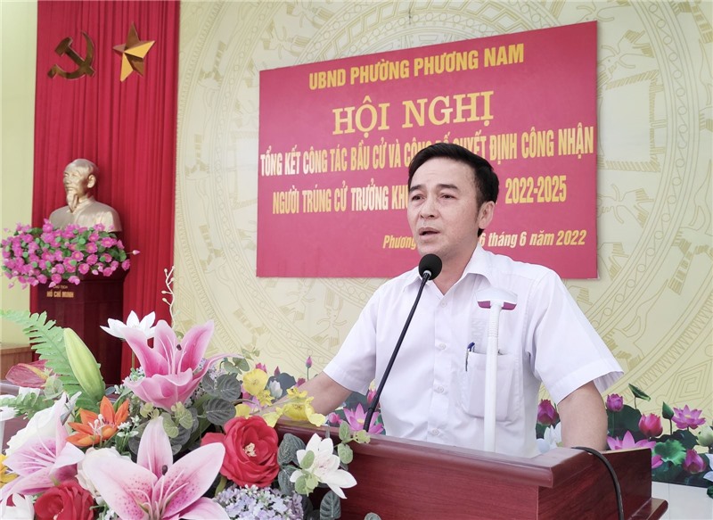 Tại hội nghị, lãnh đạo UBND phường Phương Nam đã thông qua báo cáo kết quả tổ chức bầu cử Trưởng khu phố nhiệm kỳ 2022-2025 trên địa bàn phường. Đảng uỷ, UBND phường đã ban hành nhiều văn bản chỉ đạo thực hiện công tác bầu cử. Uỷ ban MTTQ phường hướng dẫn Ban công tác mặt trận các khu dân cư triển khai quy trình hiệp thương 3 bước giới thiệu nhân sự bầu trưởng khu phố nhiệm kỳ 2022 - 2025 theo quy định. Thông qua hiệp thương đã thống nhất giới thiệu 14 ứng cử viên bầu trưởng khu phố nhiệm kỳ 2022 - 2025. Trong đó 13/14 ứng viên là người tái cử, 1 ứng viên bầu mới. Phường Phương Nam đã thành lập 14 tổ bầu cử tại các khu dân cư. Toàn phường có 3.855 cử tri đại diện hộ gia đình tham gia bầu cử.