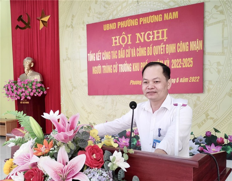 Ngày 16/6, UBND phường Phương Nam tổ chức hội nghị tổng kết công tác bầu cử và công bố quyết định công nhận người trúng cử trưởng khu phố nhiệm kỳ 2022 - 2025.