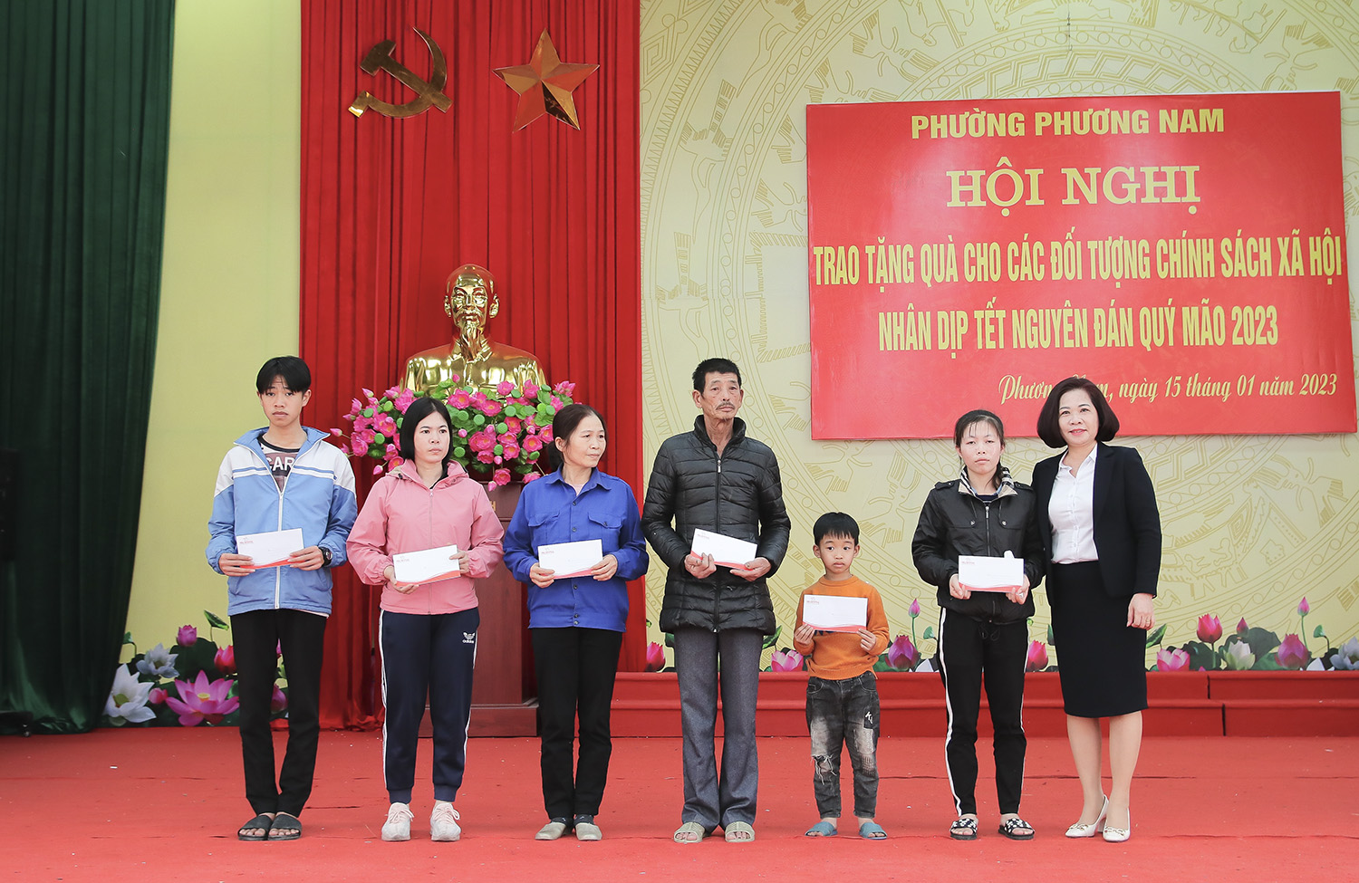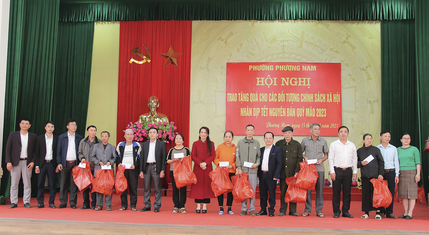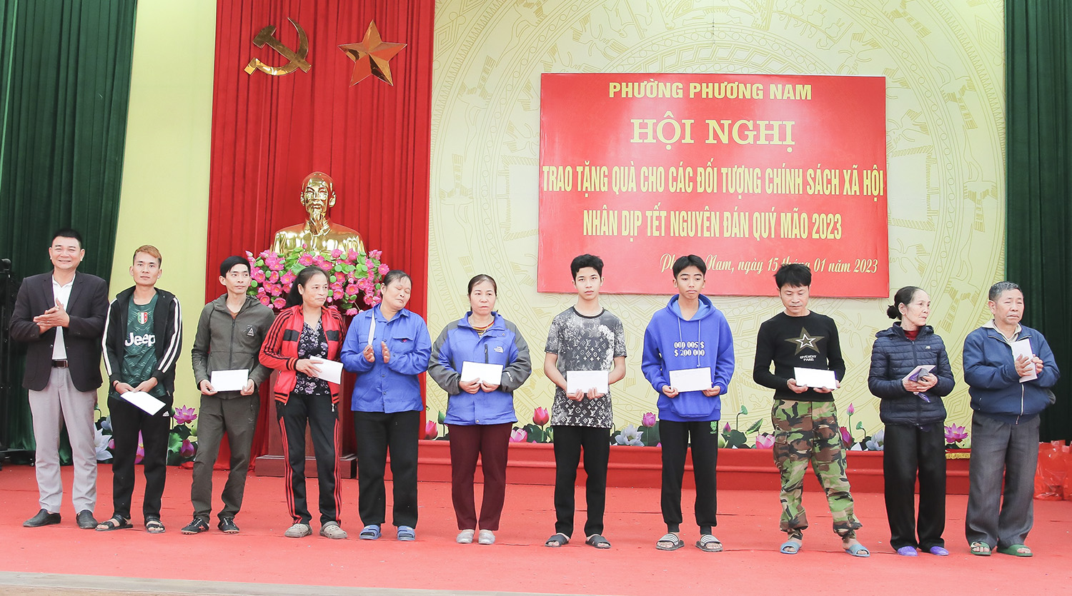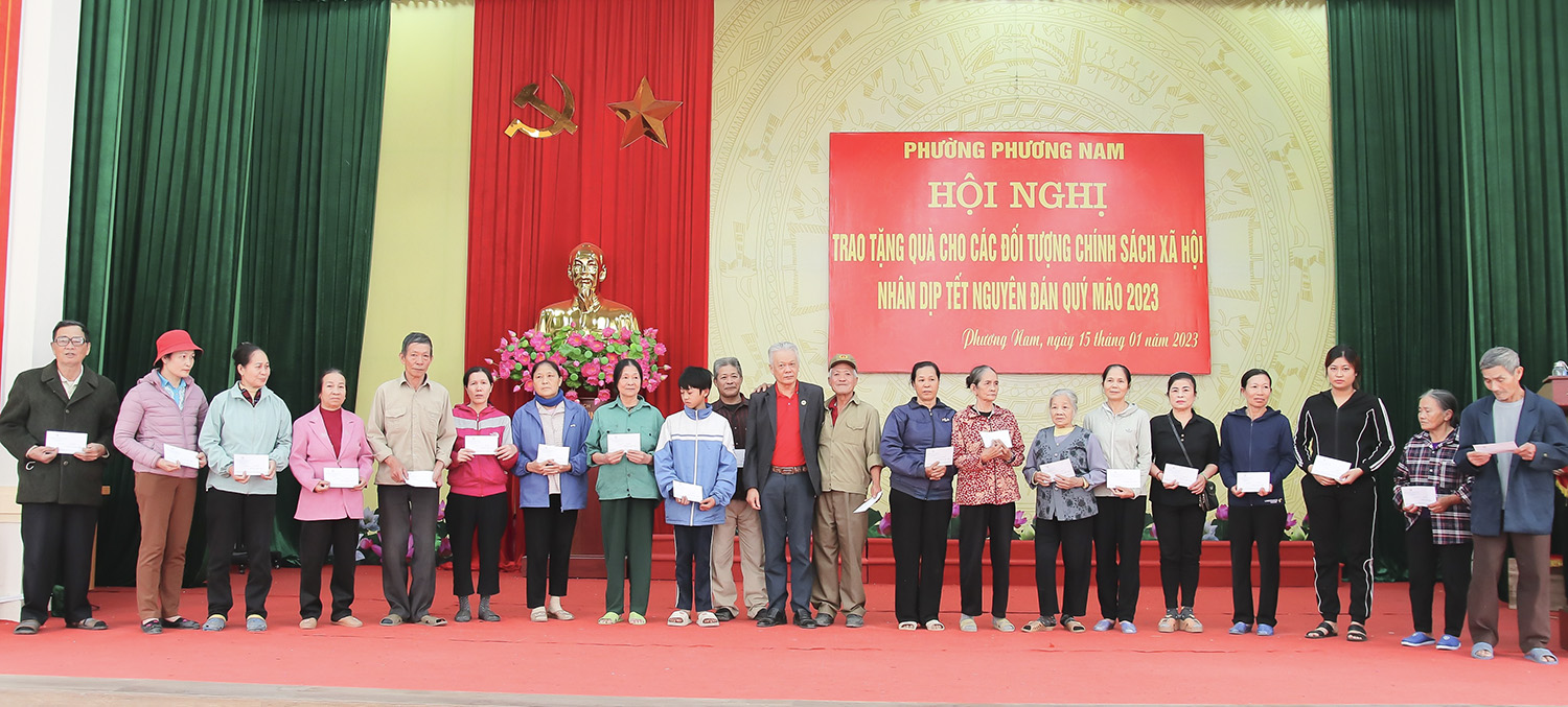 Tại hội nghị, phường Phương Nam phối hợp với Ngân hàng Nông nghiệp và Phát triển nông thôn Việt Nam chi nhánh Uông Bí, Công ty Cổ phần Phương Nam, Công ty TNHH Duy Hòa 68, Công ty Cổ phần Cơ khí Nam Sơn, Công ty TNHH Thành Đạt Uông Bí, Văn phòng Tổng Đại lý Prudential Uông Bí cùng các cá nhân có tấm lòng hảo tâm trên địa bàn phường đã trao tặng quà Tết cho các hộ gia đình nghèo, cận nghèo, gia đình có hoàn cảnh khó khăn đột xuất, trẻ em có hoàn cảnh đặc biệt khó khăn.