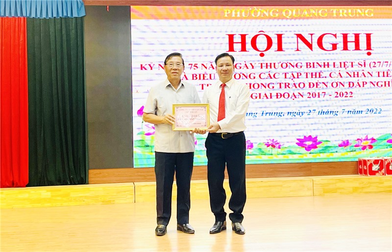 Nhân dịp này, phường Quang Trung đã trao quà tri ân 156 thương binh, bệnh binh, gia đình người có công với cách mạng; khen thưởng 5 tập thể, 8 cá nhân có thành tích tiêu biểu trong phong trào “Đền ơn đáp nghĩa” giai đoạn 2017-2022.