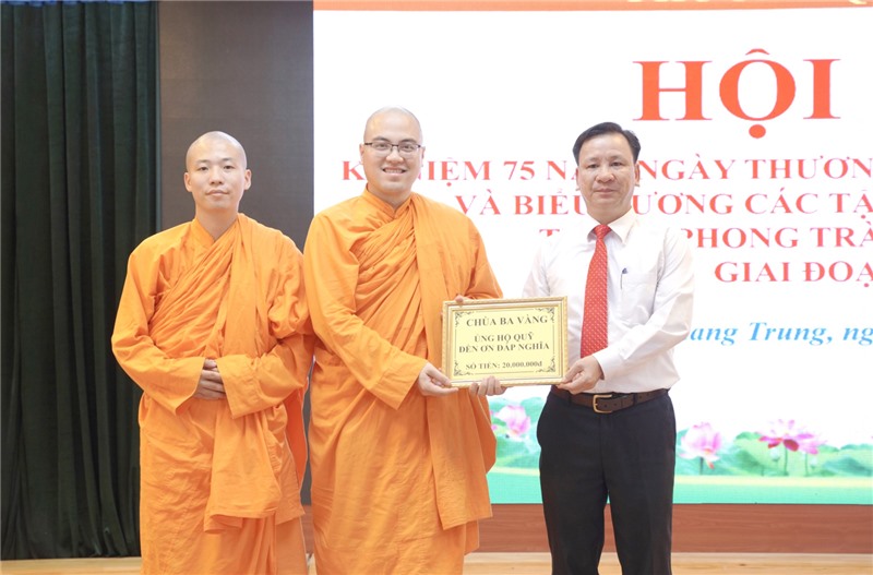 Lãnh đạo phường Quang Trung tiếp nhận ủng hộ Quỹ Đền ơn đáp nghĩa.