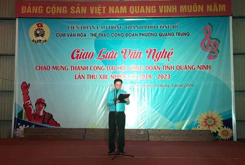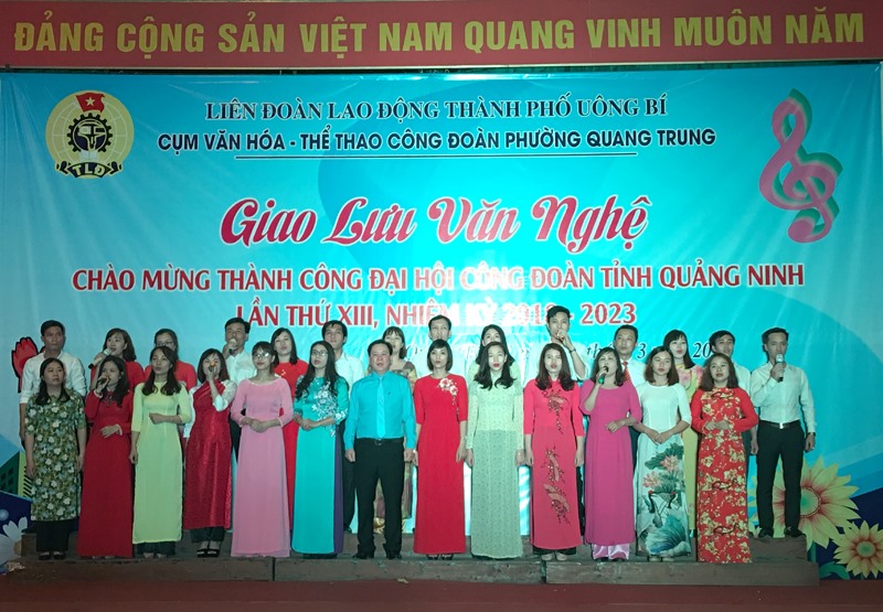 Chào mừng thành công Đại hội Công đoàn tỉnh Quảng Ninh lần thứ XIII, nhiệm kỳ 2018-2023, vừa qua, UBND phường Quang Trung tổ chức đêm giao lưu văn nghệ thu hút đông đảo các đoàn viên công đoàn trên địa bàn tham gia. Dự buổi giao lưu có các đồng chí: Nguyễn Đức Hoạt - Trưởng ban Tuyên giáo LĐLĐ tỉnh, Chủ tịch công đoàn viên chức tỉnh; Nguyễn Lan Anh - Chủ tịch LĐLĐ thành phố Uông Bí.