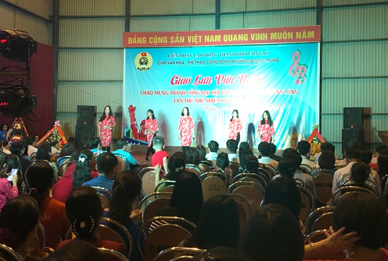 Chào mừng thành công của đại hội, đoàn viên công đoàn thuộc các cơ quan, đơn vị, trường học trên địa bàn phường Quang Trung đã biểu diễn những tiết mục ca múa, khiêu vũ đặc sắc, thu hút sự chú ý và động viên cổ vũ của đông đảo đại biểu, khán giả. Các tiết mục có chủ đề ca ngợi Đảng, Bác Hồ, giai cấp công nhân, tổ chức công đoàn, ca ngợi tình yêu đất nước, quê hương Quảng Ninh nói chung và TP Uông Bí nói riêng. Nhiều tiết mục được dàn dựng công phu, như: hợp ca “công đoàn ca”, đơn ca “giai điệu tổ quốc” của công đoàn Trung tâm GDNN-GDTX, song ca nam - nữ “Người đi xây hồ Kẻ Gỗ” của công đoàn Công ty than Nam Mẫu...