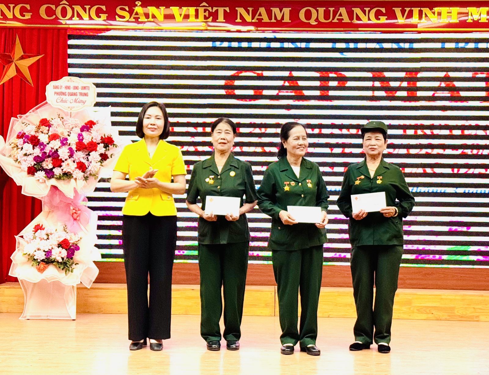 Lãnh đạo Đảng uỷ phường trao quà nữ tự vệ tiêu biểu.