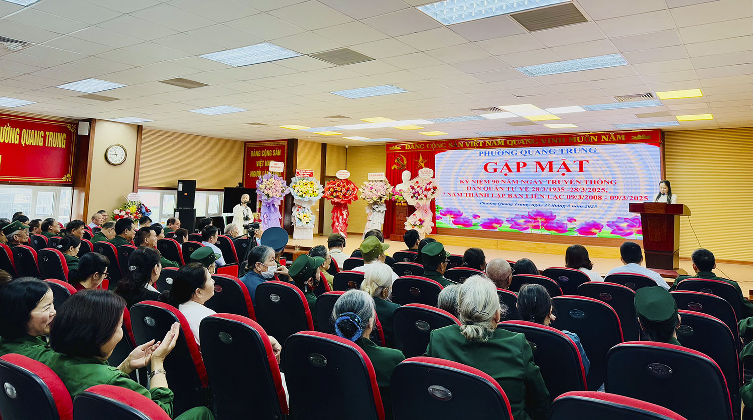 Ngày 27/3, phường Quang Trung tổ chức gặp mặt kỷ niệm 90 năm ngày truyền thống lực lượng Dân quân Tự vệ (28/3/1935 – 28/3/2025) và 17 năm thành lập Ban liên lạc Cựu nữ dân quân xã Đồng Tiến – nay là phường Quang Trung (9/3/2008 – 9/3/2025).