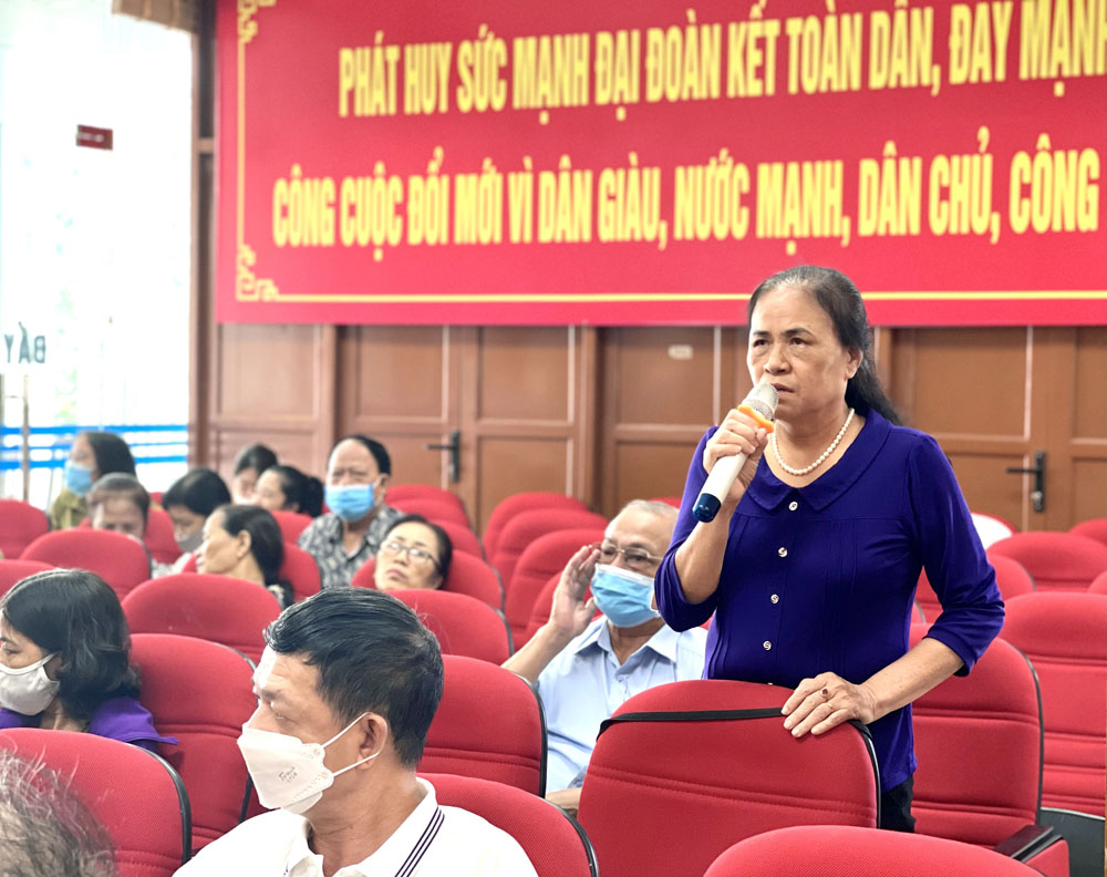 Đại diện khu dân cư tham gia ý kiến đóng góp đối với Công an thành phố, Công an phường Quang Trung.