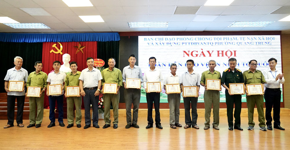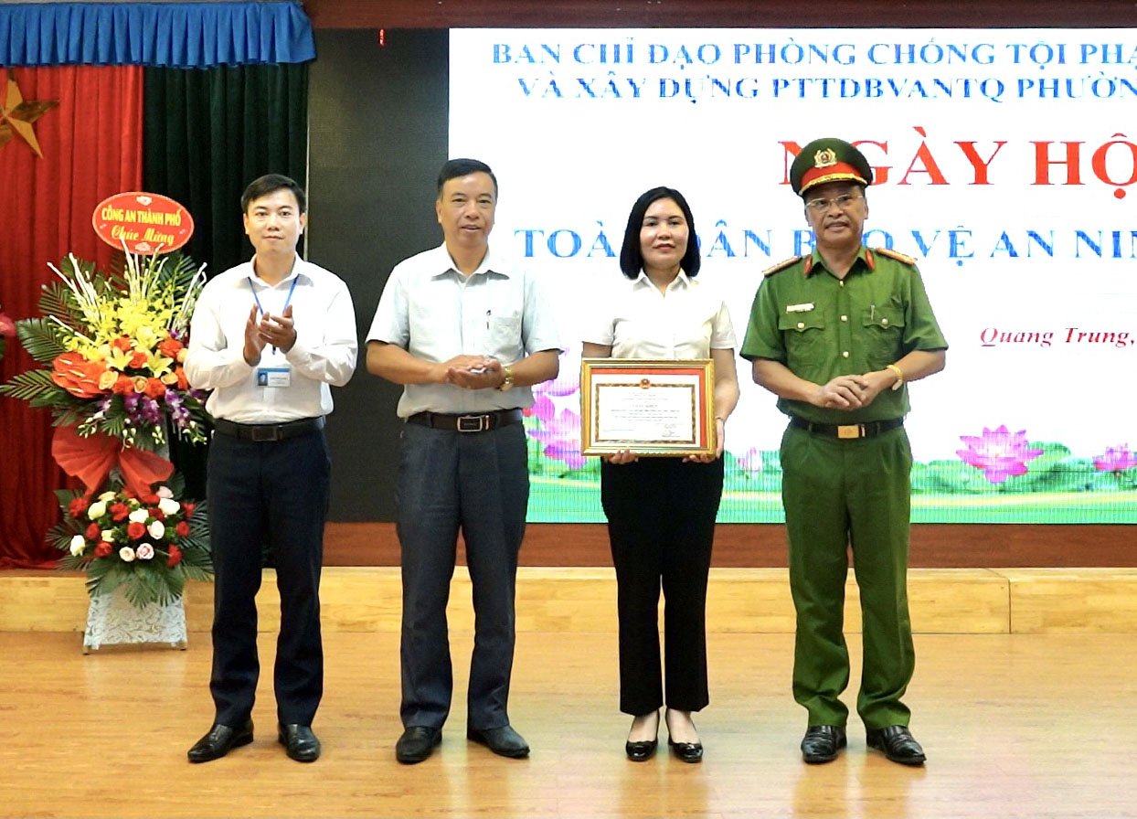 Nhân dịp này, Giám đốc Công an tỉnh, UBND phường Quang Trung đã khen thưởng nhiều tập thể, cá nhân có thành tích xuất sắc trong phong trào toàn dân bảo vệ ANTQ.