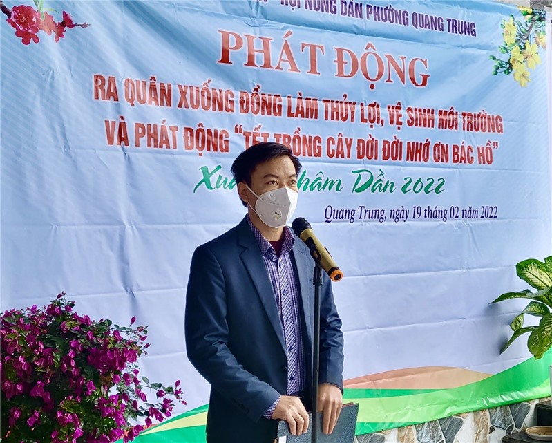 Đồng chí Đặng Nhật Hải, Chủ tịch UBND phường phát động chương trình ra quân làm thủy lợi, vệ sinh môi trường và trồng cây năm 2022.