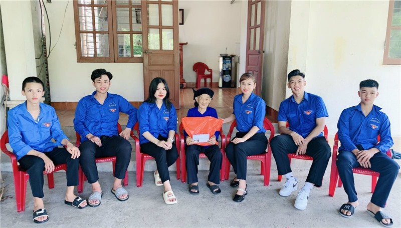 Đoàn viên, thanh niên phường Thanh Sơn thăm, tặng quà Mẹ Việt Nam Anh hùng Hoàng Thị Nghi.