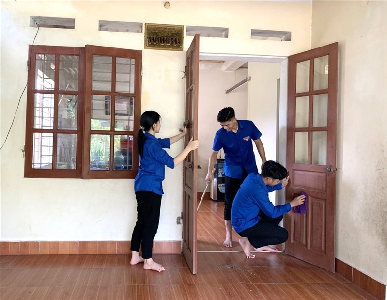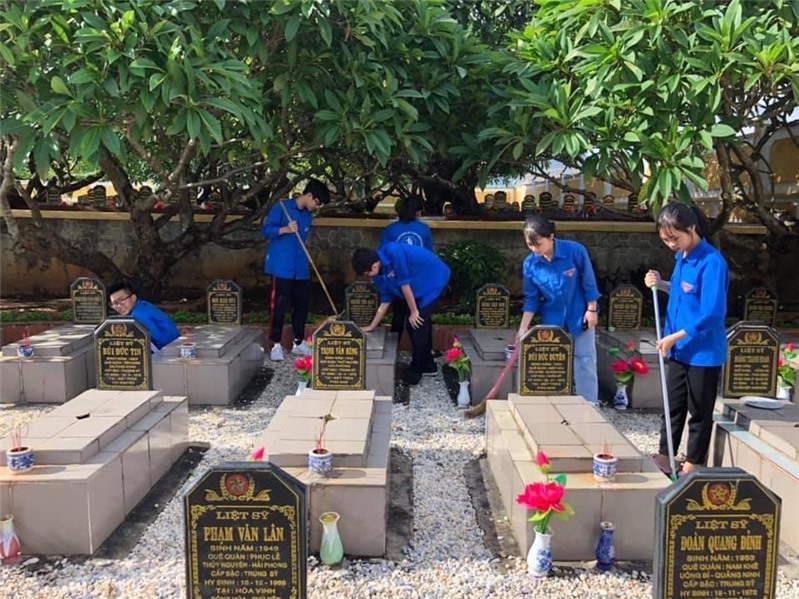 Đoàn viên, thanh niên phường Thanh Sơn vệ sinh nhà Mẹ Việt Nam Anh hùng Hoàng Thị Nghi và Nghĩa trang liệt sĩ thành phố.