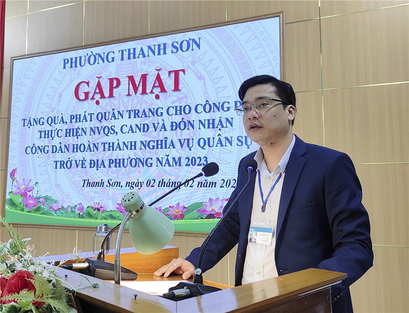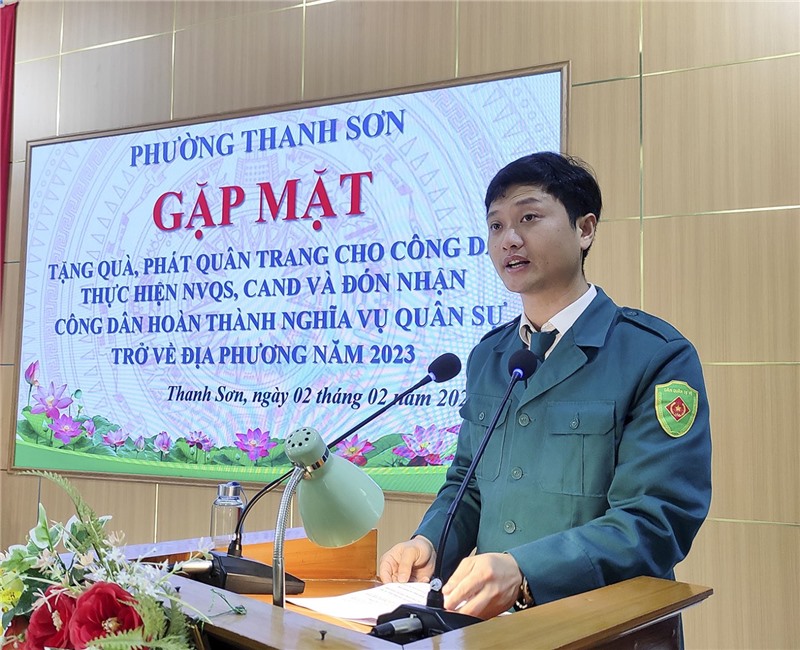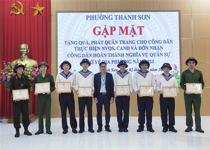 Ngày 02/02, phường Thanh Sơn tổ chức gặp mặt tặng quà, phát quân trang cho công dân thực hiện nghĩa vụ quân sự, tham gia nghĩa vụ CAND và đón nhận công dân hoàn thành nghĩa vụ quân sự trở về địa phương. Dự chương trình gặp mặt có thượng tá Bùi Lương Long, Phó Chỉ huy trưởng Ban CHQS thành phố.