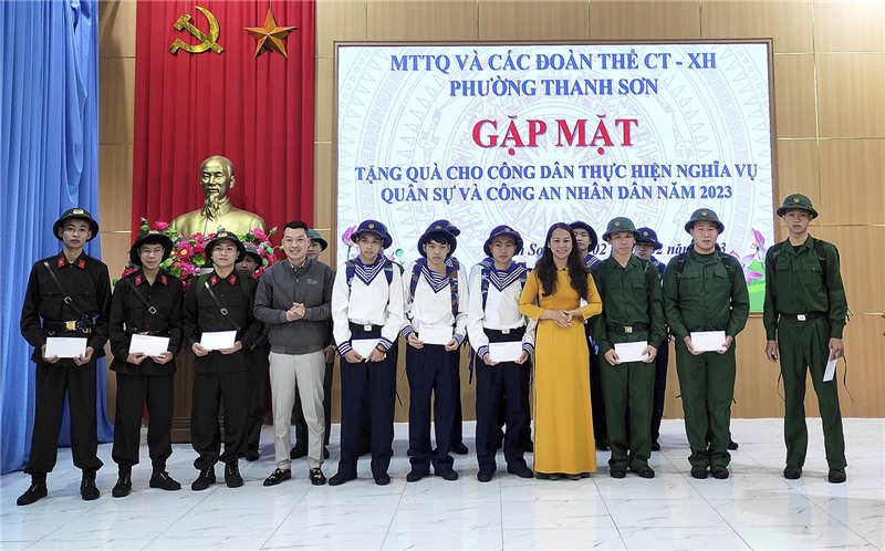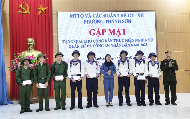 Các đoàn thể chính trị - xã hội phường Thanh Sơn, các khu dân cư trên địa bàn đã trao tặng các thanh niên chuẩn bị nhập ngũ những phần quà ý nghĩa.