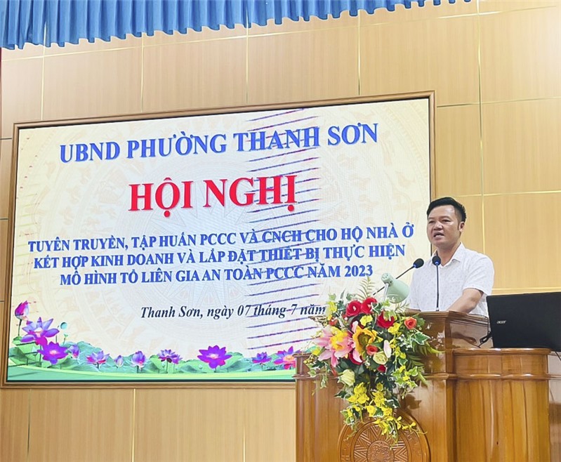 Ngày 7/7, UBND phường Thanh Sơn tổ chức Hội nghị tuyên truyền, tập huấn Phòng cháy chữa cháy và cứu nạn cứu hộ (PCCC và CNCH) cho hộ nhà ở kết hợp mô hình kinh doanh và lắp đặt thiết bị thực hiện mô hình tổ liên gia an toàn PCCC năm 2023.