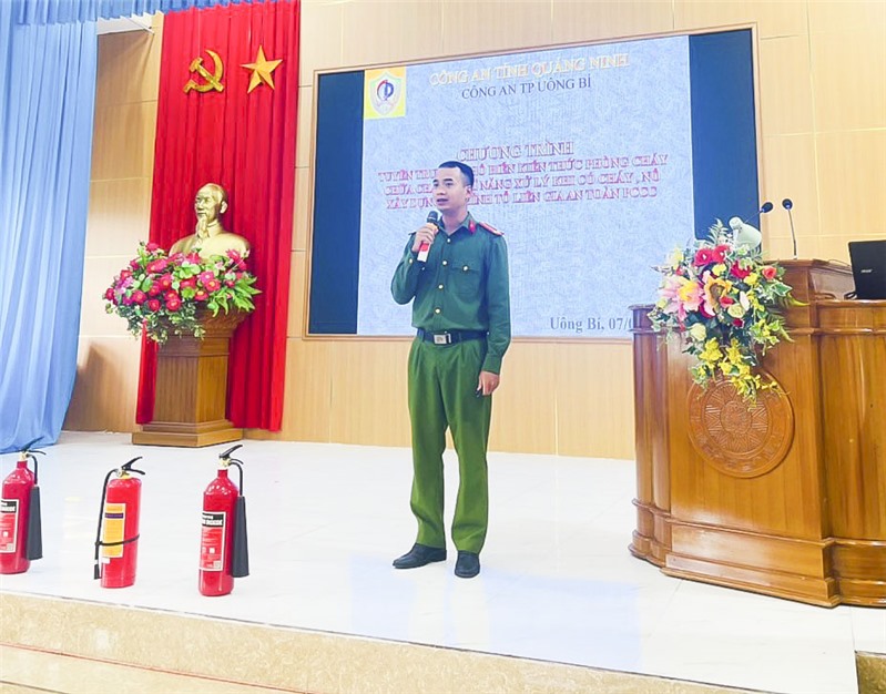Cán bộ nghiệp vụ Đội cảnh sát PCCC và CNCH tuyên truyền tại hội nghị.