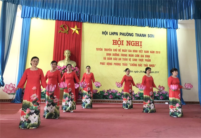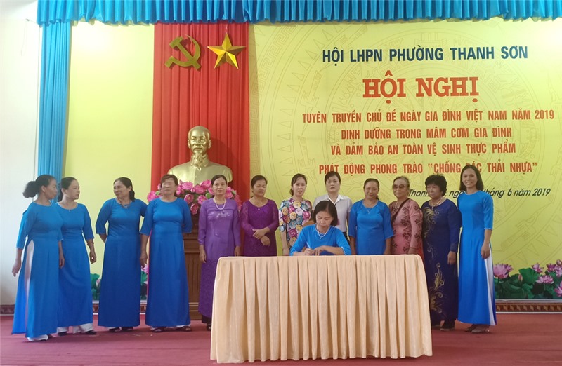 Ngày 28-6, Hội LHPN phường Thanh Sơn tổ chức gặp mặt kỷ niệm ngày gia đình Việt Nam 28-6; tuyên truyền dinh dưỡng trong mâm cơm gia đình, phát động phong trào "Chống rác thải nhựa".