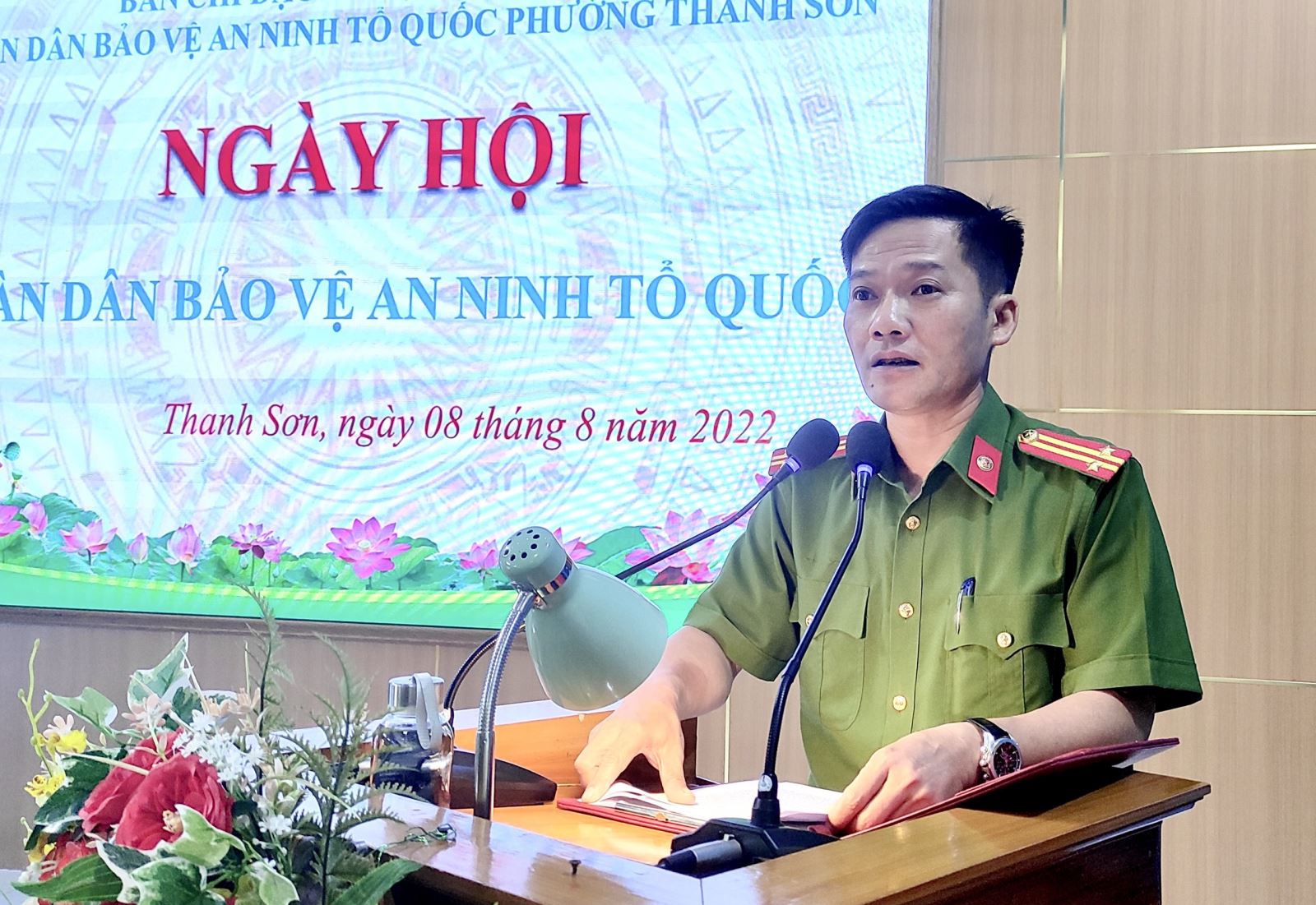 Lãnh đạo Công an phường Thanh Sơn báo cáo tình hình ANTT trên địa bàn 8 tháng đầu năm.