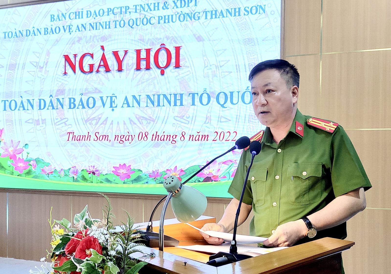 Ngày 8/8, phường Thanh Sơn tổ chức Ngày hội toàn dân bảo vệ an ninh Tổ quốc (ANTQ) và Diễn đàn công an lắng nghe ý kiến Nhân dân. Cùng dự chương trình có lãnh đạo Uỷ ban MTTQ thành phố, lãnh đạo Công an thành phố, lãnh đạo các phòng nghiệp vụ, công an các xã, phường trên địa bàn và đông đảo Nhân dân phường Thanh Sơn.
