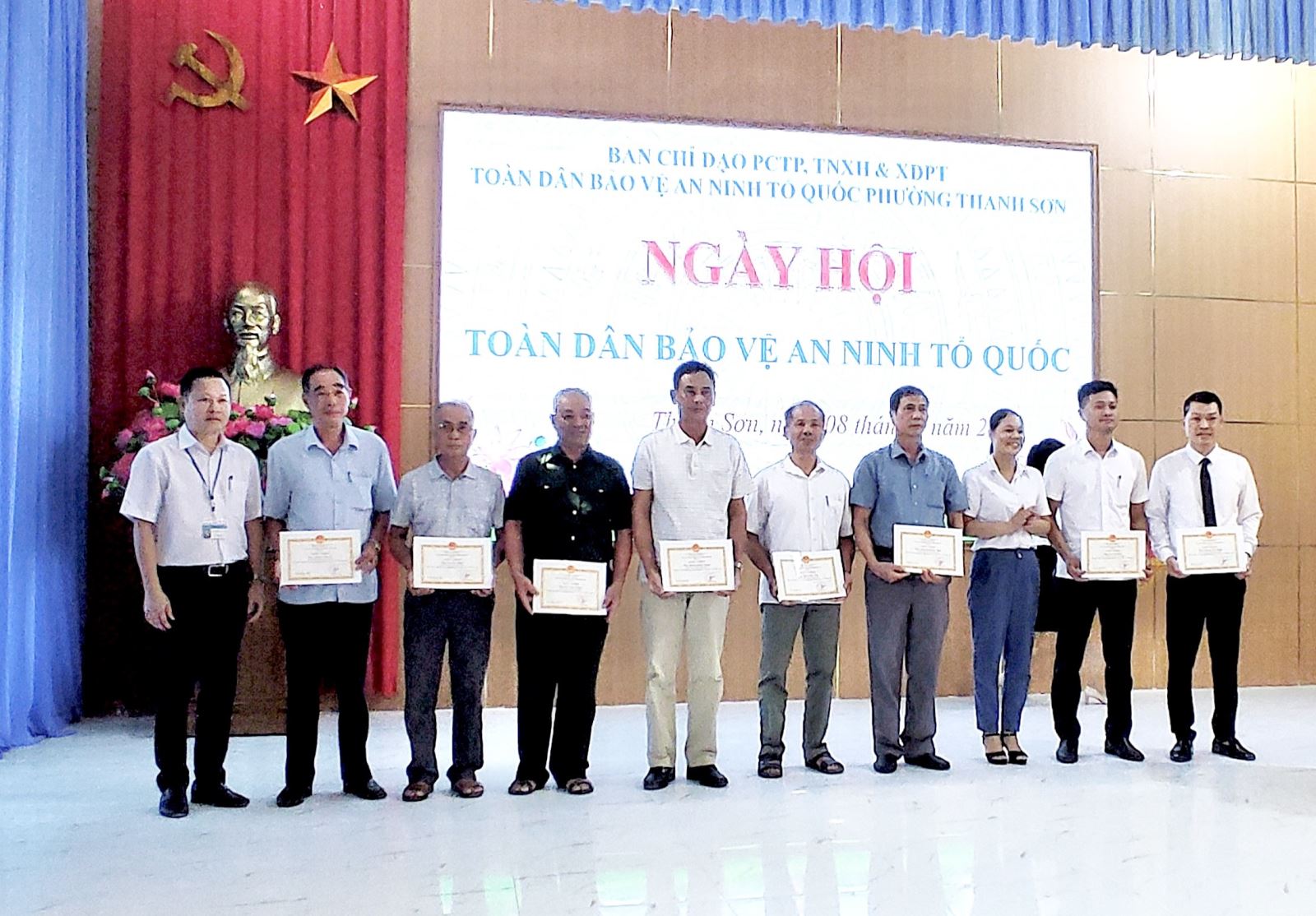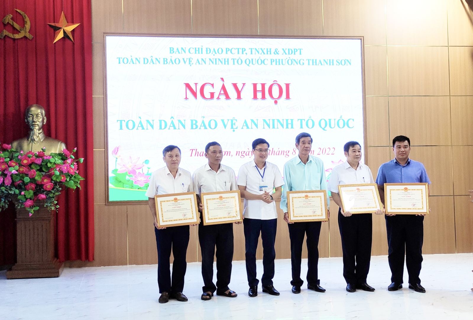 Nhân dịp này, Chủ tịch UBND phường Thanh Sơn đã khen thưởng 5 tập thể và 10 cá nhân có thành tích xuất sắc trong xây dựng phong trào toàn dân bảo vệ an ninh tổ quốc năm 2022.