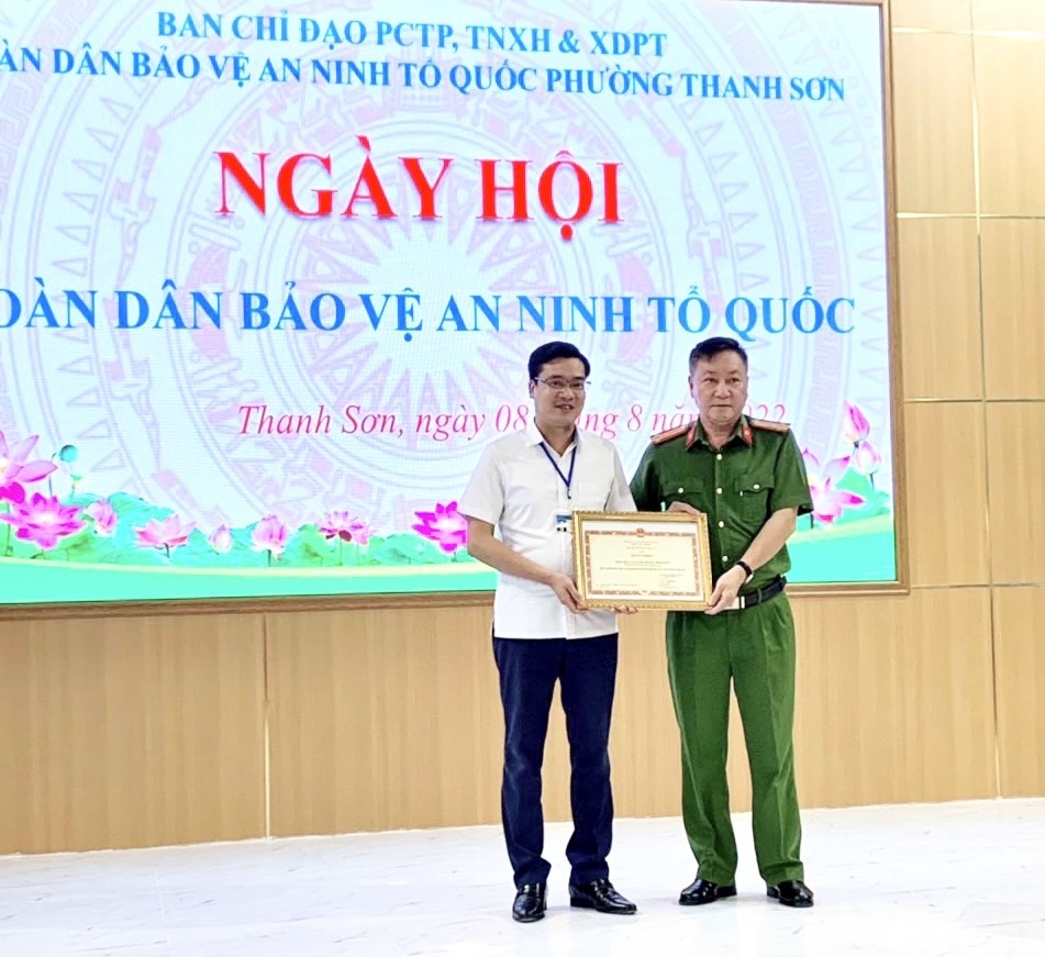 Nhân dân và cán bộ phường Thanh Sơn vinh dự được Bộ trưởng Bộ Công an tặng Bằng khen vì thành tích xuất sắc trong phong trào bảo vệ an ninh Tổ quốc năm 2021.