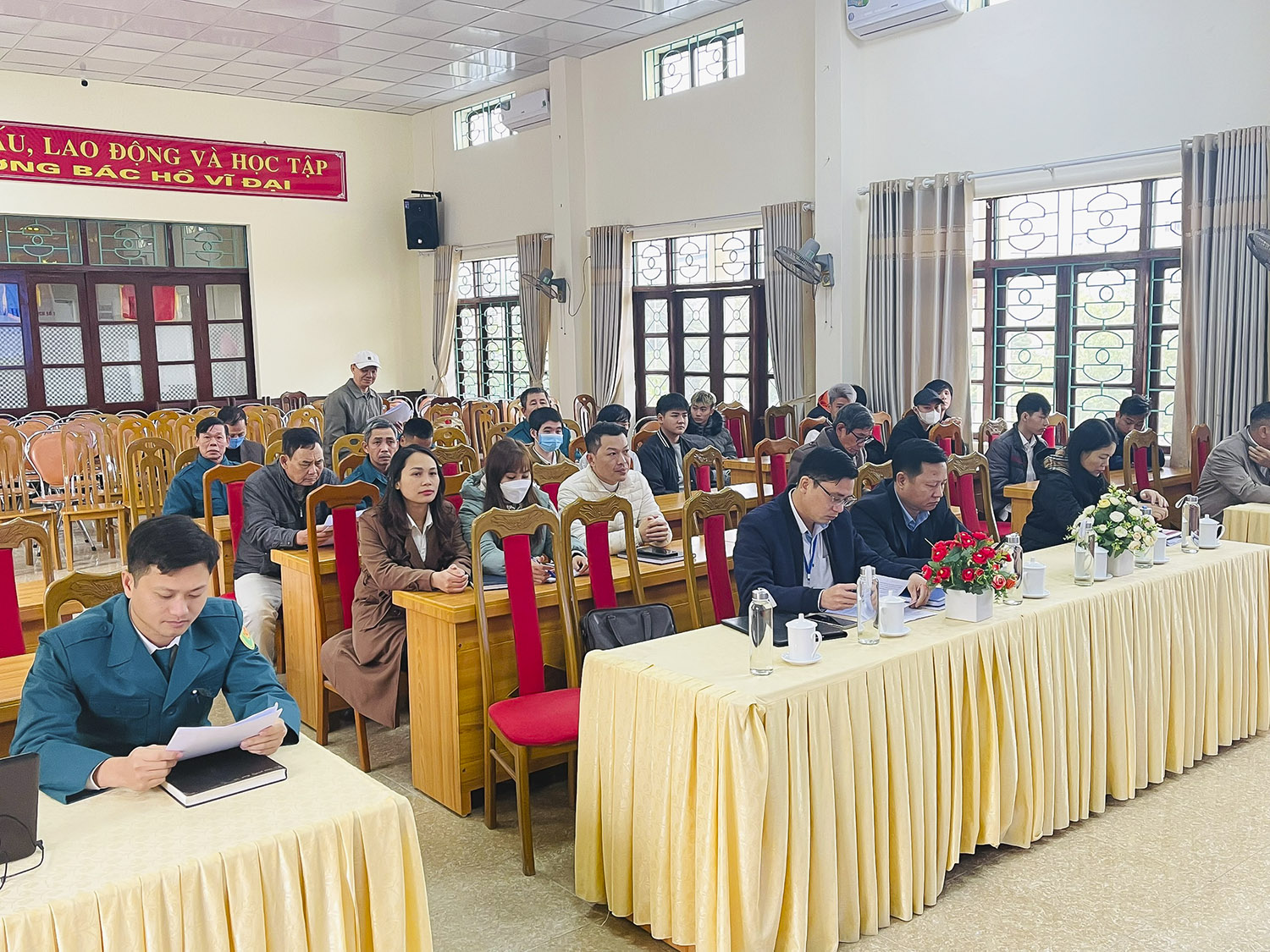Đồng chí Bùi Tiến Hưng, Bí thư Đảng uỷ, Chủ tịch UBND phường, Chủ tịch Hội đồng nghĩa vụ quân sự phường Thanh Sơn phát biểu tại hội nghị.
