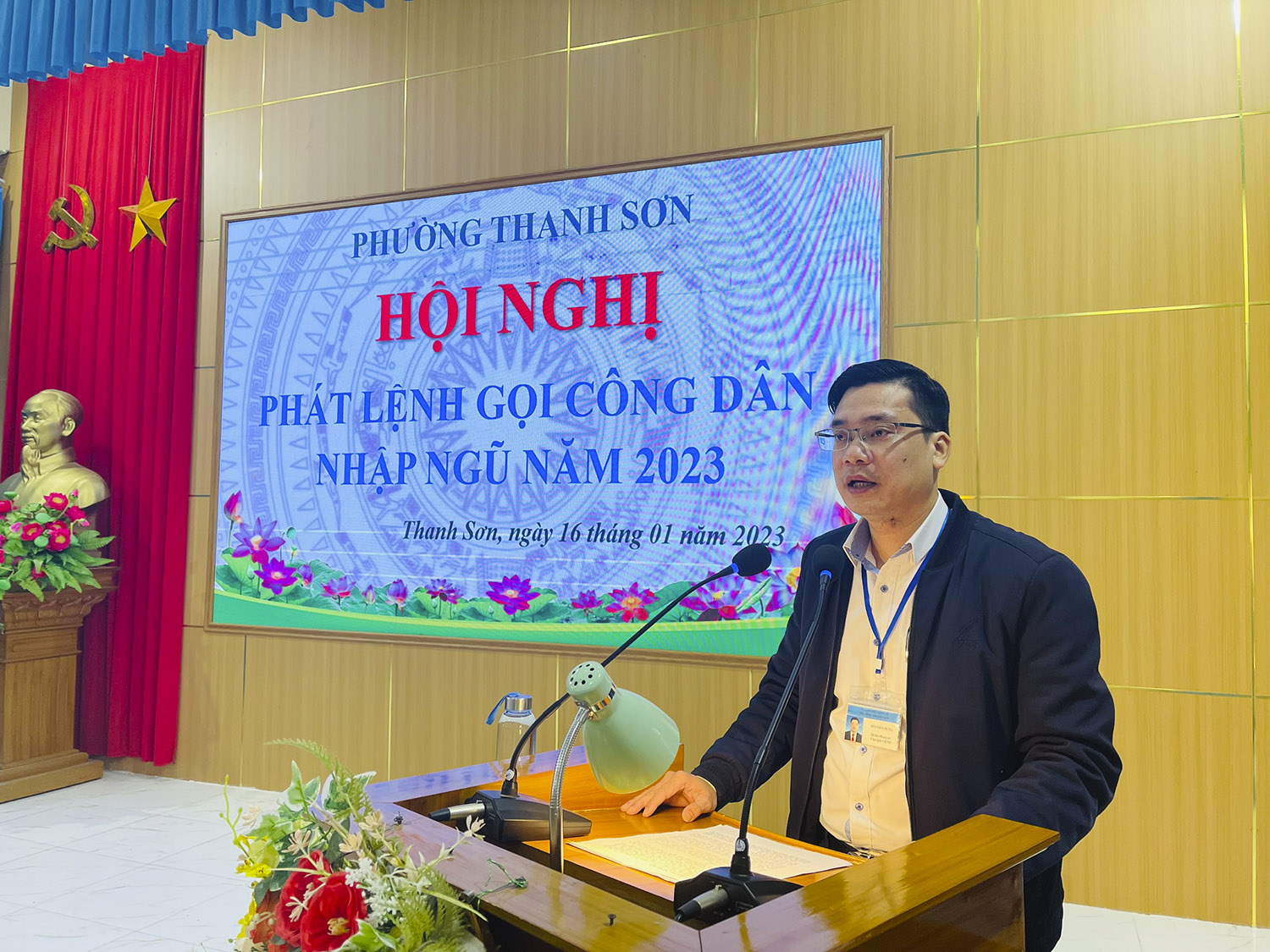 Phát biểu tại hội nghị, đồng chí Bùi Tiến Hưng, Bí thư Đảng uỷ, Chủ tịch UBND phường, Chủ tịch Hội đồng nghĩa vụ quân sự phường Thanh Sơn ghi nhận, biểu dương tinh thần trách nhiệm, ý thức của các thanh niên lên đường nhập ngũ thực hiện nghĩa vụ quân sự và thực hiện nghĩa vụ tham gia công an nhân dân đợt này. Đồng chí cũng mong muốn các thanh niên ưu tú của phường Thanh Sơn sẽ tiếp tục kế thừa phát huy truyền thống của cha anh đi trước, xác định rõ trách nhiệm bảo vệ Tổ quốc là nghĩa vụ thiêng liêng của công dân, phải ra sức phấn đấu học tập, rèn luyện, chấp hành nghiêm kỷ luật của Quân đội và Công an, hoàn thành xuất sắc mọi nhiệm vụ được giao.