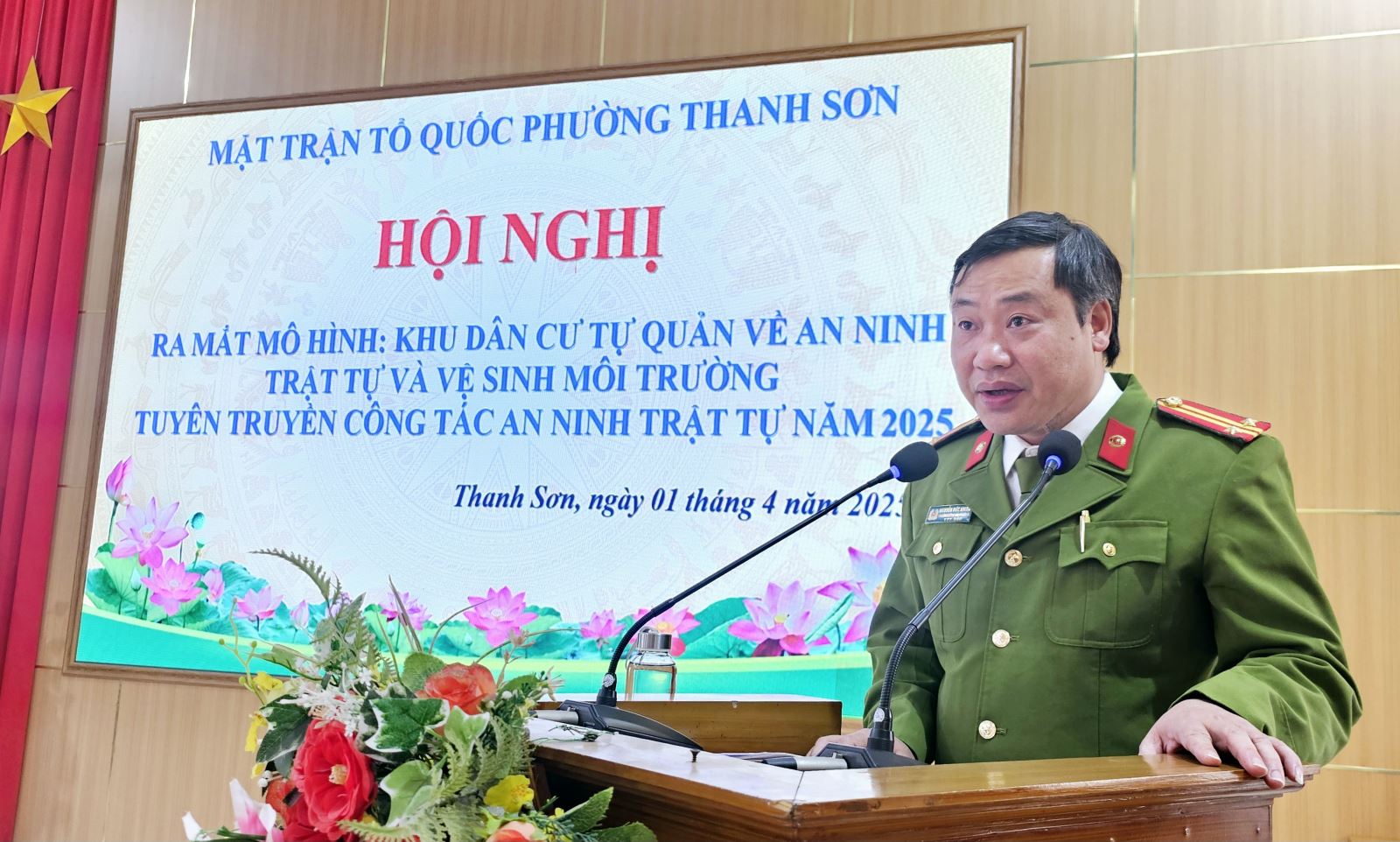 Chiều ngày 01/4, phường Thanh Sơn tổ chức hội nghị ra mắt mô hình “Khu dân cư tự quản giữ gìn an ninh trật tự và đảm bảo vệ sinh môi trường” và tuyên truyền công tác an ninh trật tự năm 2025.