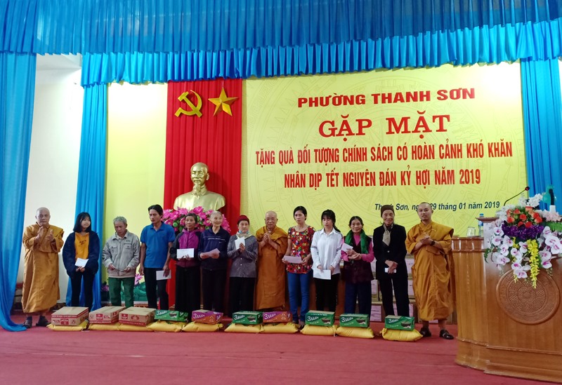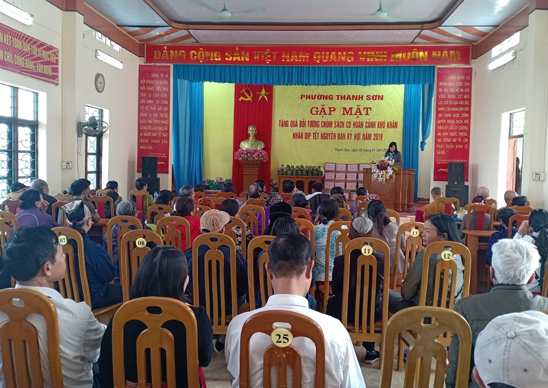 Nhằm chăm lo Tết cho các đối tượng chính sách, chiều 29-1, phường Thanh Sơn tổ chức gặp mặt, tặng 100 suất quà Tết cho nạn nhân chất độc da cam/dioxin, hộ nghèo, cận nghèo, trẻ em, phụ nữ, gia đình có hoàn cảnh đặc biệt khó khăn, yếu thế.
