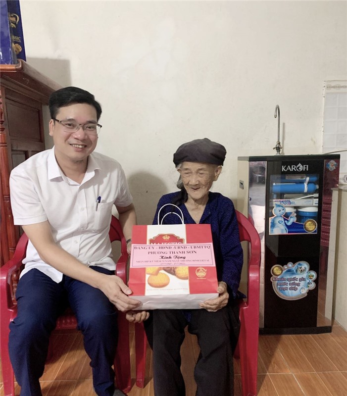 Thiết thực kỷ niệm 75 năm ngày thương binh, liệt sỹ (27/7/1947 - 27/7/2022), phường Thanh Sơn đã tổ chức thăm, tặng quà 22 người có công, thân nhân người có công tiêu biểu, có hoàn cảnh khó khăn trên địa bàn.