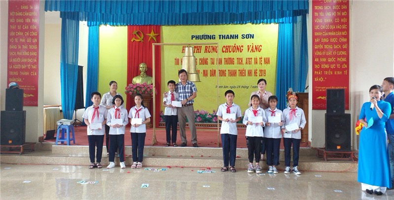 Hội thi Rung chuông vàng phường Thanh Sơn là một trong những hoạt động hè nhằm tạo sân chơi trí tuệ, lành mạnh, bổ ích, góp phần giúp thiếu nhi phát triển tư duy, kỹ năng tìm hiểu, chiếm lĩnh tri thức, khẳng định bản thân.