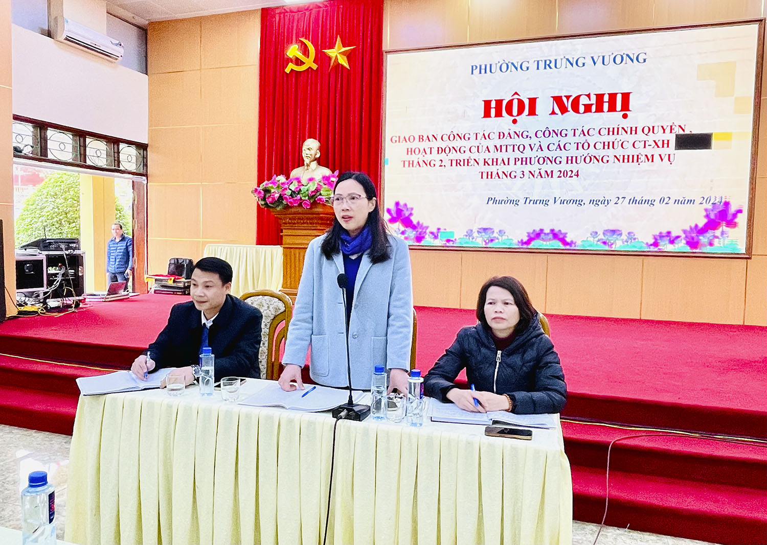 Phường Trưng Vương giao ban công tác Đảng, công tác chính quyền, hoạt động mặt trận và các tổ chức chính trị xã hội tháng 2