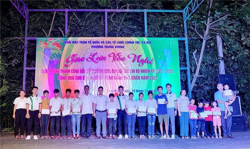 Tối ngày 15/7, tại sân vui chơi thanh thiếu nhi khu Đền Công 2, Phường Trưng Vương tổ chức chương trình giao lưu văn nghệ chào mừng thành công cuộc bầu cử Trưởng khu, Đại hội các Chi bộ nhiệm kỳ 2022-2025.