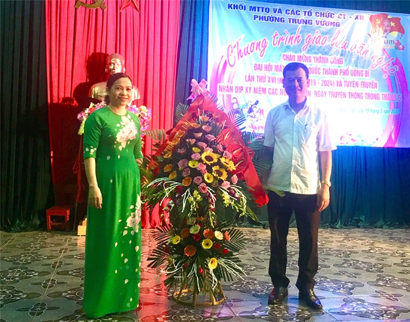 Tối 18-5, phường Trưng Vương tổ chức Chương trình giao lưu văn nghệ chào mừng thành công Đại hội MTTQ thành phố lần thứ 16, nhiệm kỳ 2019-2024, kỷ niệm các ngày lễ trong tháng 5. Tới dự có đồng chí Phạm Thái Sơn, Phó Chủ tịch MTTQ thành phố.