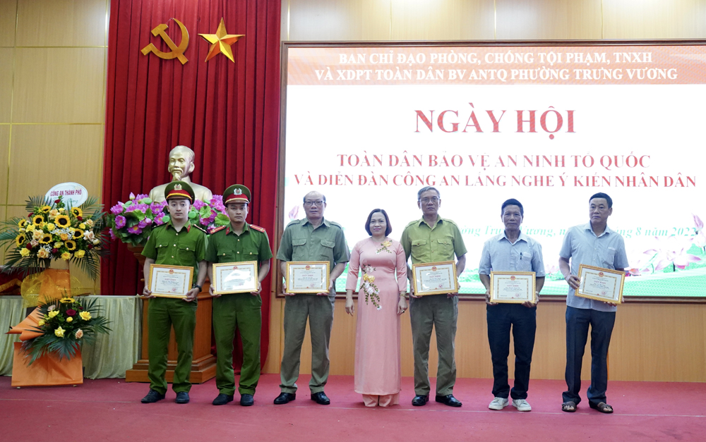 Nhân dịp này, Giám đốc Công an tỉnh, UBND thành phố, UBND phường Trưng Vương đã khen thưởng nhiều tập thể, cá nhân có thành tích xuất sắc trong phong trào toàn dân bảo vệ ANTQ năm 2022.