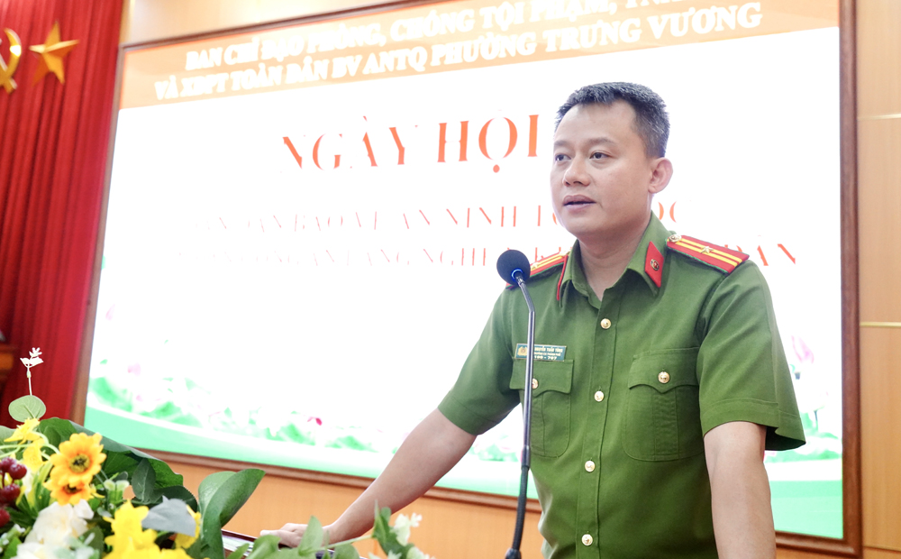 Lãnh đạo phường Trưng Vương ôn lại chặng đường 17 năm Ngày hội toàn dân bảo vệ ANTQ.