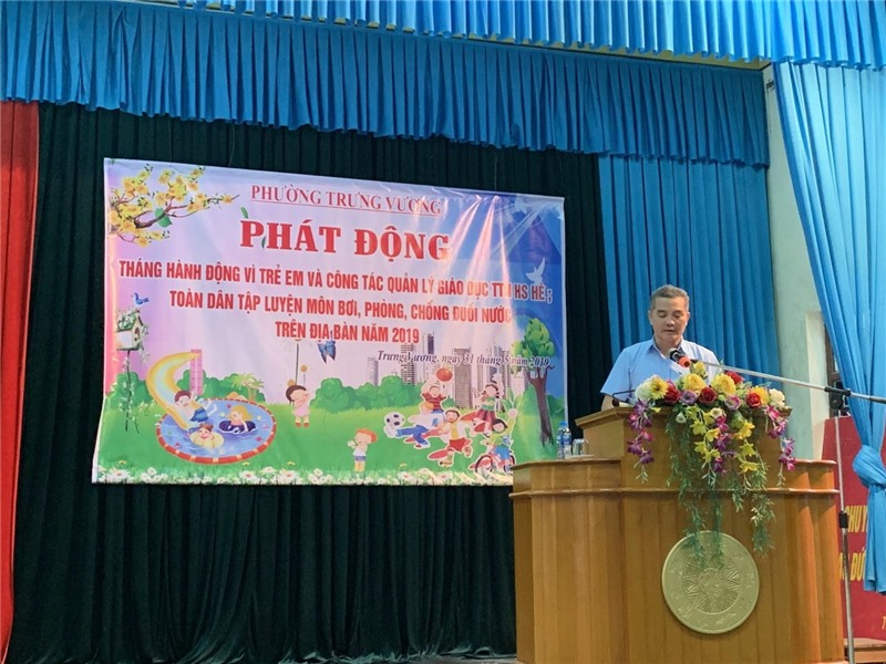 Nhân dịp này, phường Trưng Vương đã phát động hưởng ứng phong trào toàn dân tập luyện môn bơi, phòng chống đuối nước, trao tặng 25 áo phao cho trẻ em có hoàn cảnh đặc biệt khó khăn.