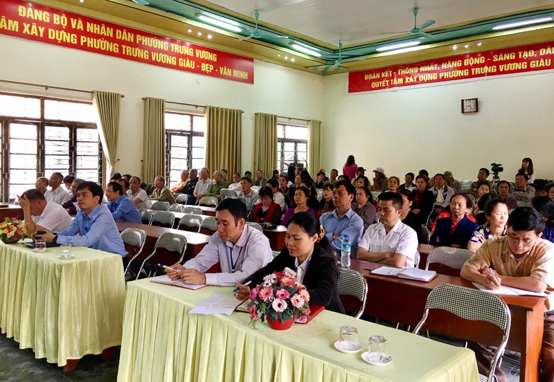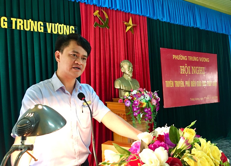 Sáng 17-4, Hội đồng phổ biến giáo dục pháp luật thành phố phối hợp với phường Trưng Vương tổ chức Hội nghị tuyên truyền, phổ biến pháp luật về quản lý trật tự đô thị và cấp phép xây dựng, Luật Đất đai, chính sách bồi thường giải phóng mặt bằng.