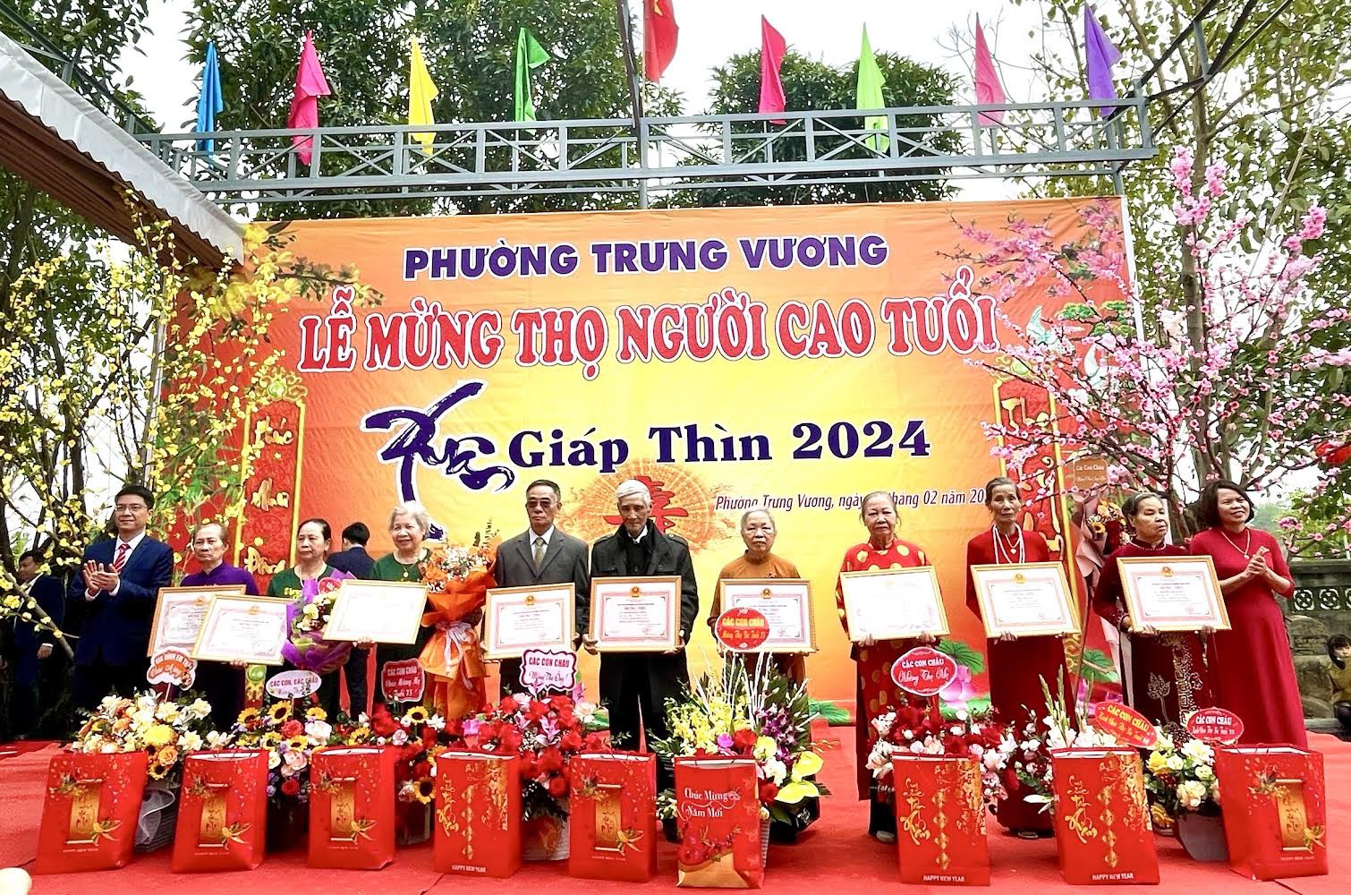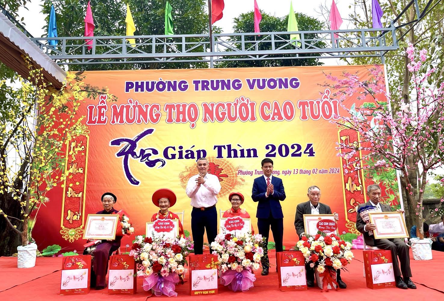Tại chương trình Phường Trưng Vương chúc thọ 143 cụ cao niên trên địa bàn.