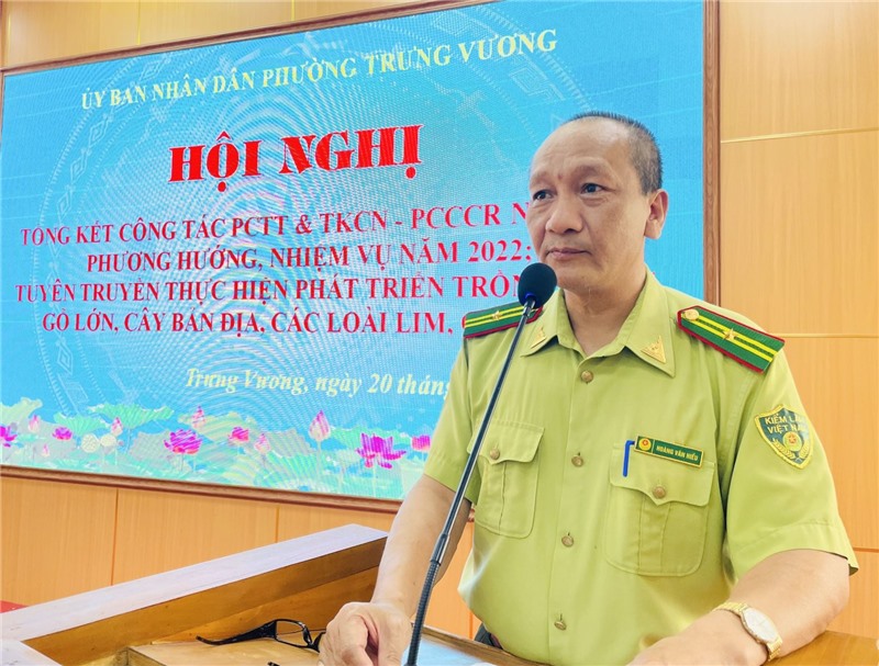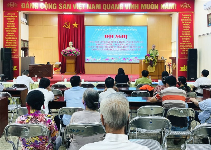 Sáng 20/5, phường Trưng Vương tổ chức hội nghị tổng kết công tác PCTT & TKCN, PCCCR năm 2021, triển khai phương hướng, nhiệm vụ năm 2022; tuyên truyền phát triển trồng rừng gỗ lớn, cây bản địa, các loài Lim, Giổi, Lát.