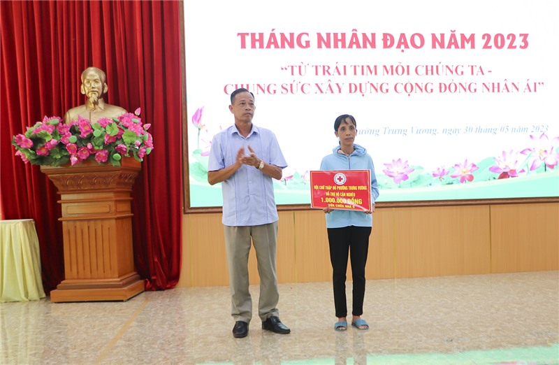 Phường Trưng Vương: Trao hỗ trợ và tặng quà hộ cận nghèo, hộ có hoàn cảnh đặc biệt khó khăn nhân Tháng Nhân đạo 2023