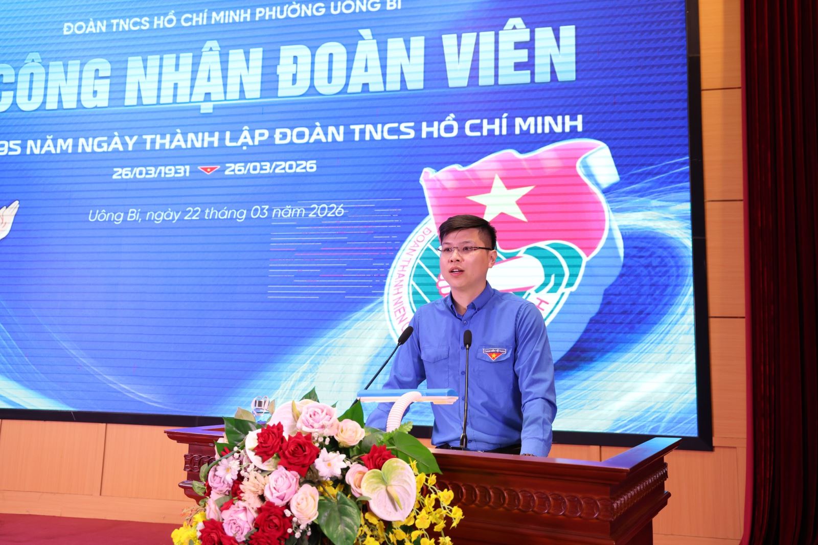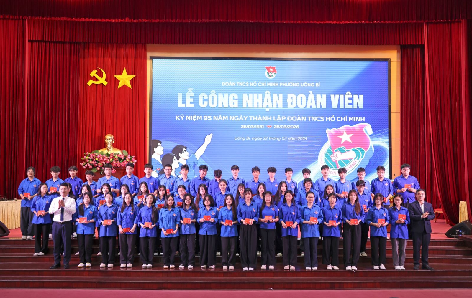 Ngày 22/3/2026, Đoàn TNCS Hồ Chí Minh phường Uông Bí long trọng tổ chức Lễ công nhận đoàn viên mới – lớp đoàn viên 95 năm ngày thành lập Đoàn TNCS Hồ Chí Minh (26/3/1931 – 26/3/2026) cho 526 thanh niên ưu tú trên địa bàn. Dự buổi lễ có đồng chí Nguyễn Hồng Quang – Ủy viên Ban Thường vụ, Chủ tịch Ủy ban MTTQ phường.